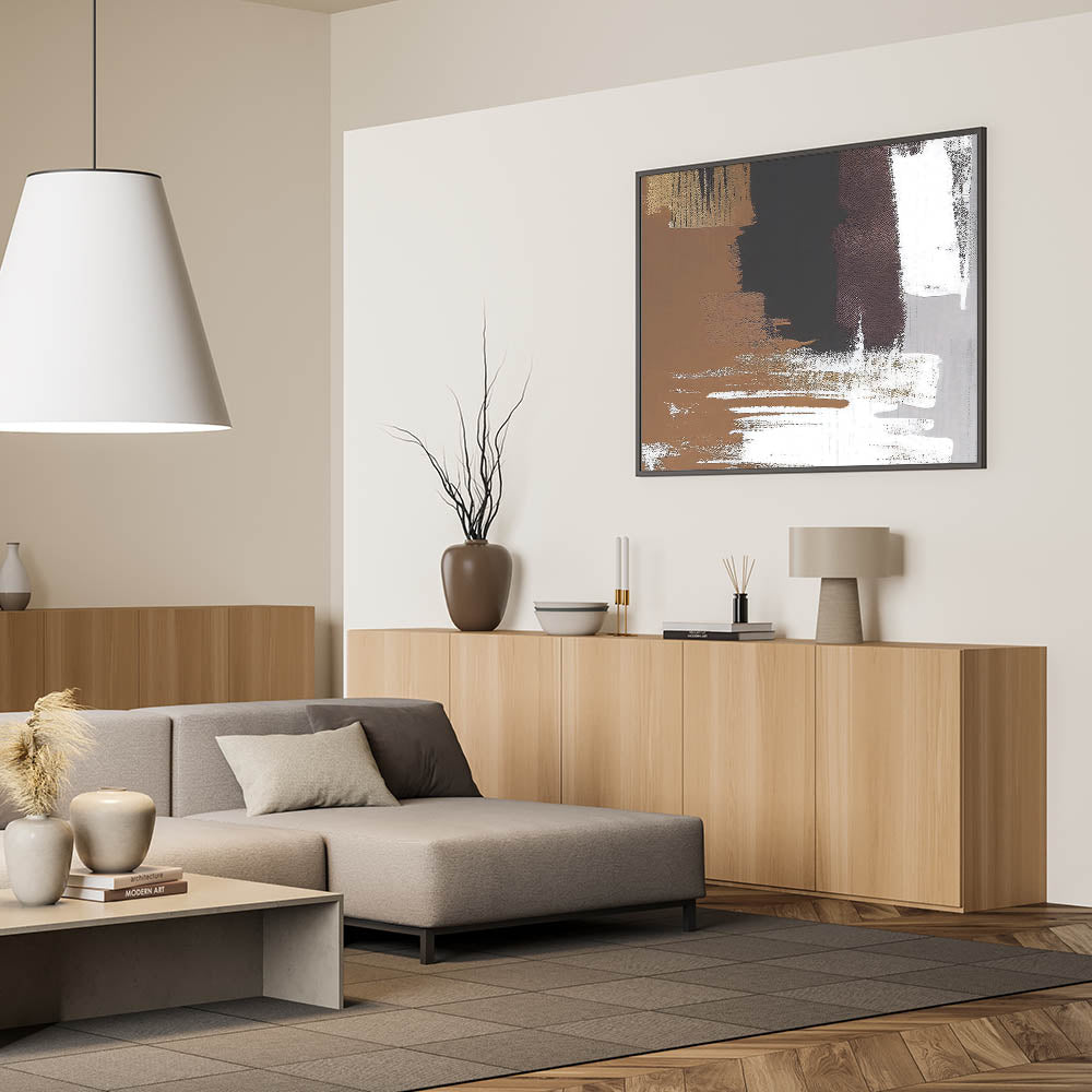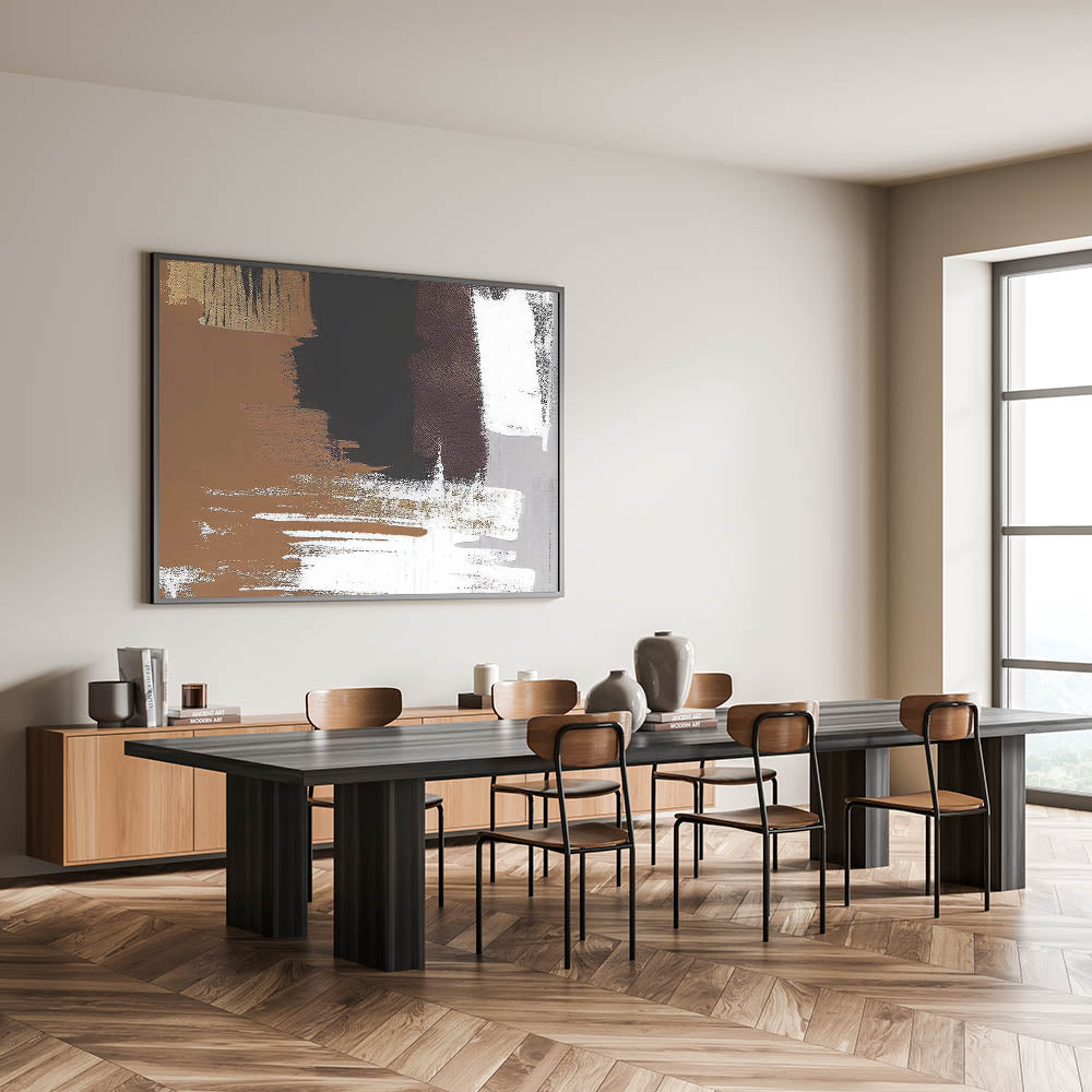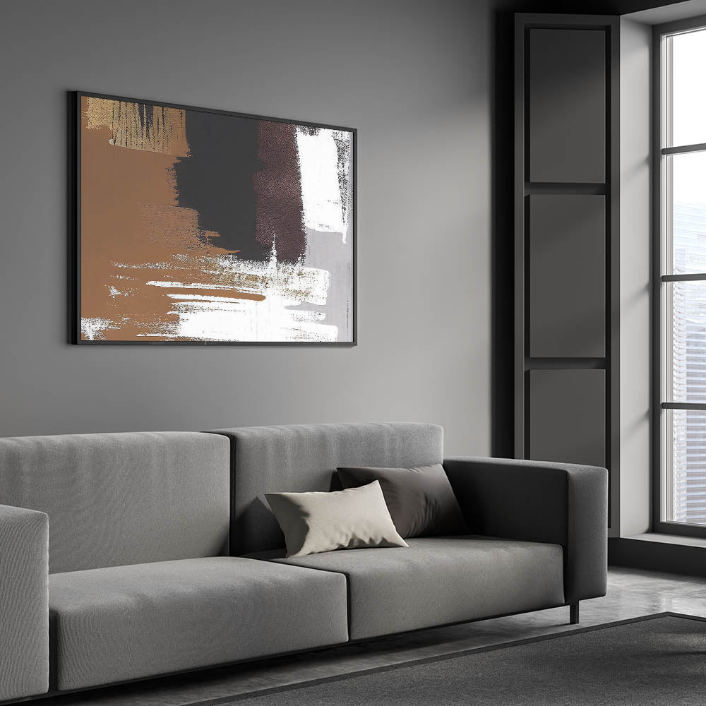Introduce a sophisticated touch to your decor with this striking Abstract Brush Strokes and Lines Art. The artwork features a dynamic composition of earthy brown, deep black, and crisp white strokes, creating a powerful yet elegant visual statement. Perfect for those who appreciate contemporary design, this piece blends geometric lines with abstract brush strokes, making it an ideal addition to modern interiors.