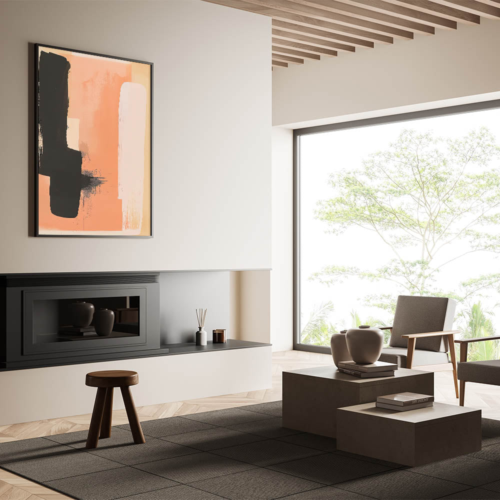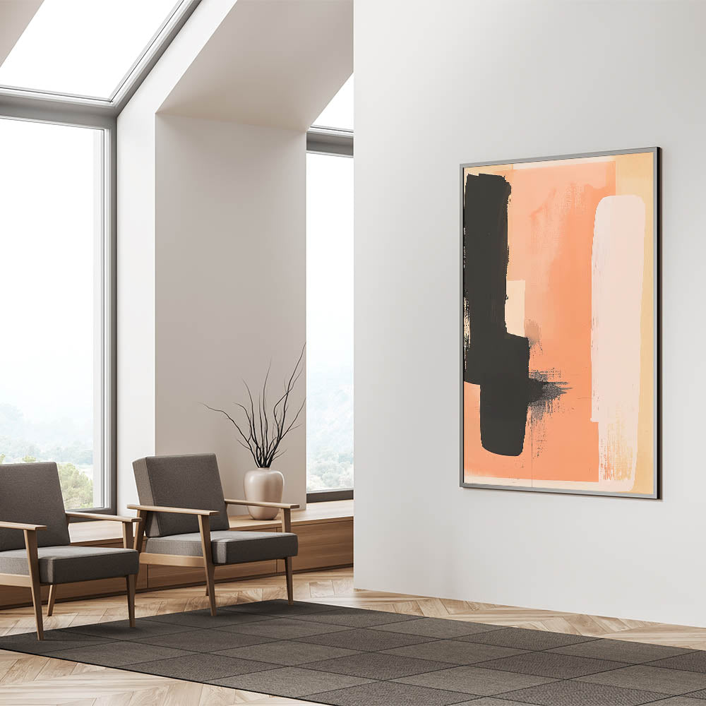 Bold Minimalist Abstract Art - Black and Peach Geometric Wall Decor
