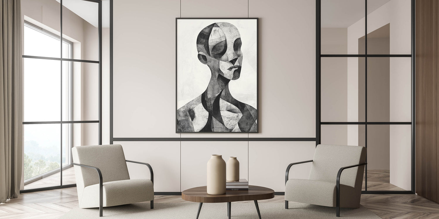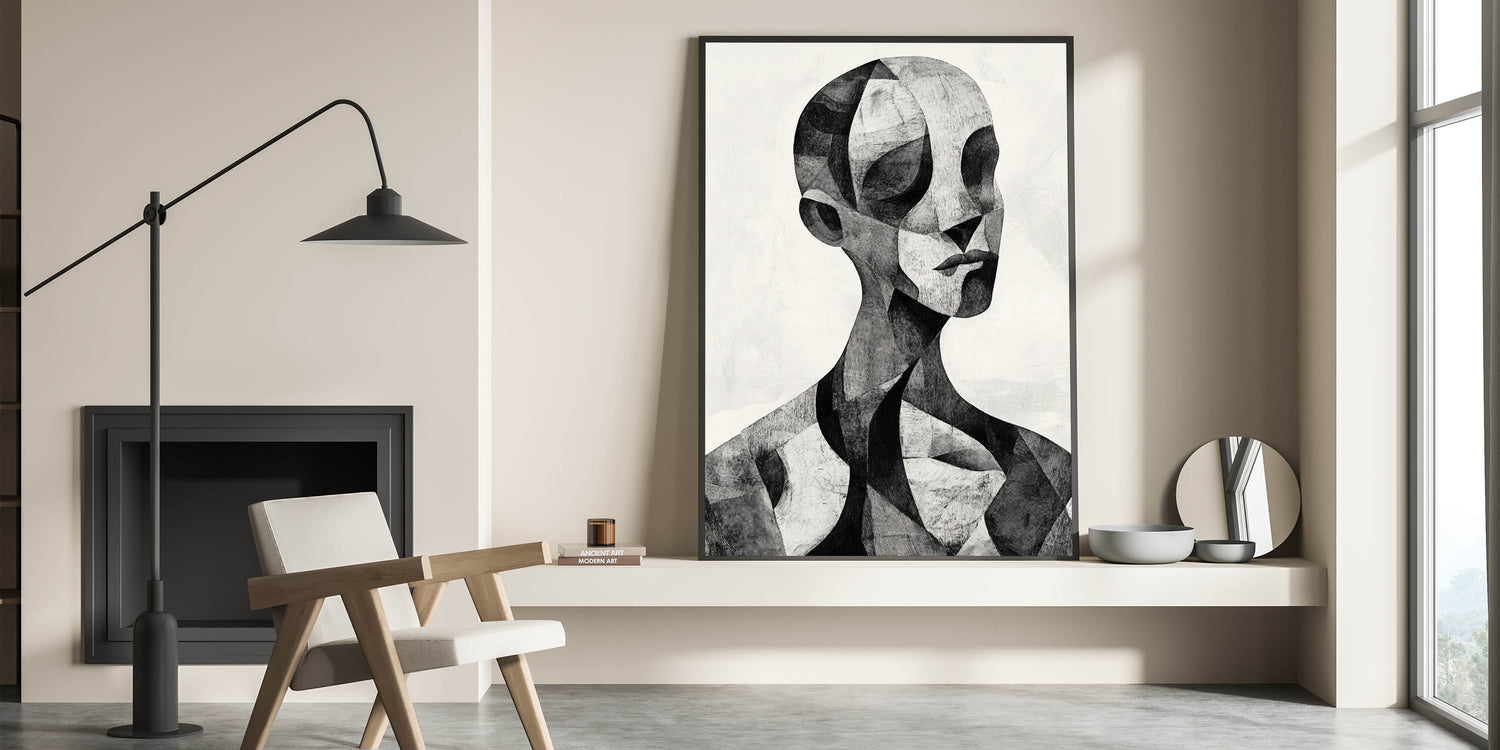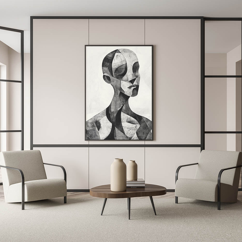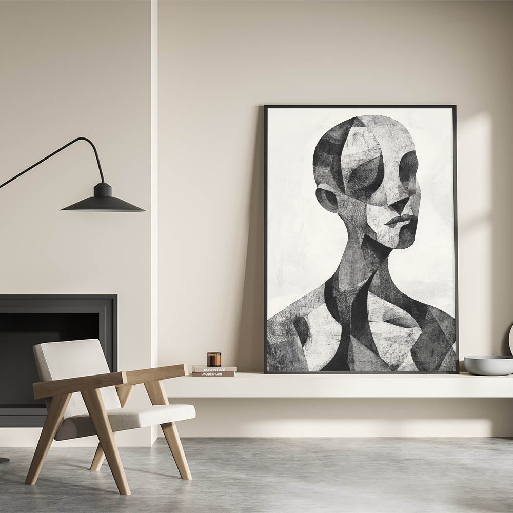 Cubist Abstract Figurative Wall Art – Monochrome Elegance