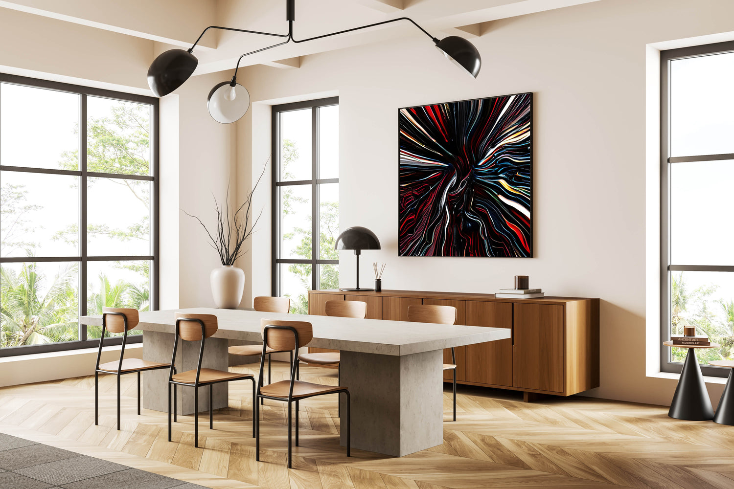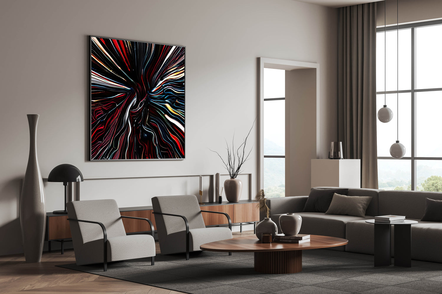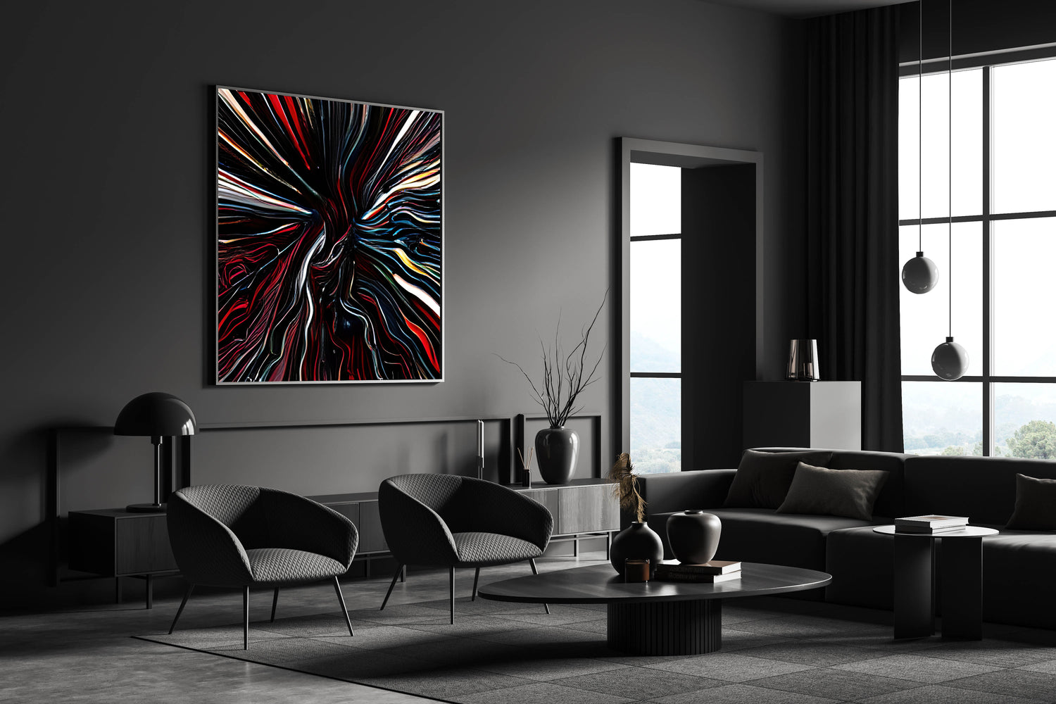 This abstract swirl art piece is perfect for those who love bold, expressive designs. Its dramatic colors and fluid motion bring life and intensity to any room, transforming your space with a sense of movement and depth.
