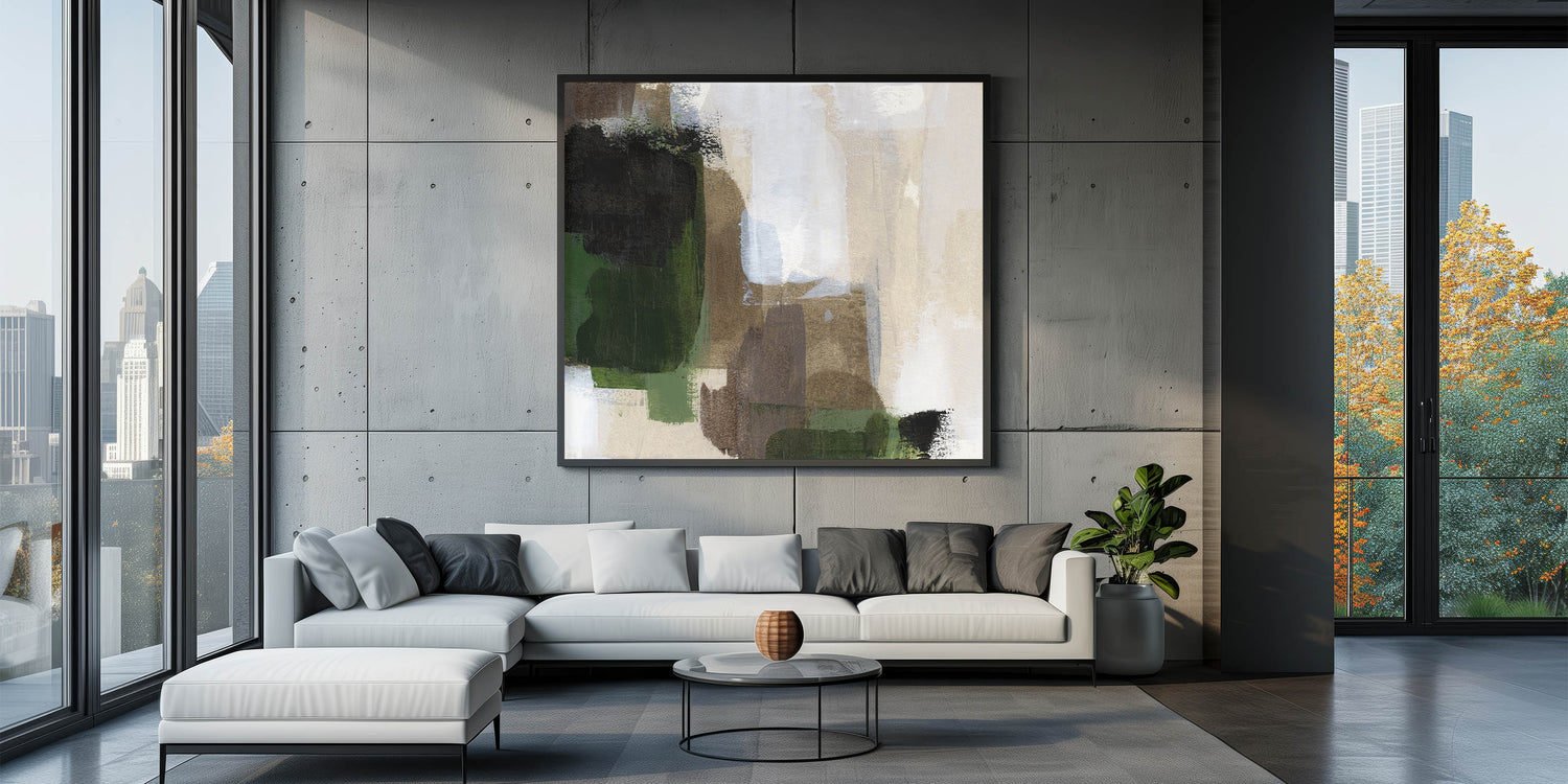 Immerse yourself in the organic beauty of Earthen Harmony Abstracts, a modern abstract art piece that showcases a natural fusion of deep forest green, warm brown, and soft beige tones. Inspired by the raw textures of nature, this artwork adds a sense of harmony and balance, making it a perfect addition to contemporary canvas art collections.