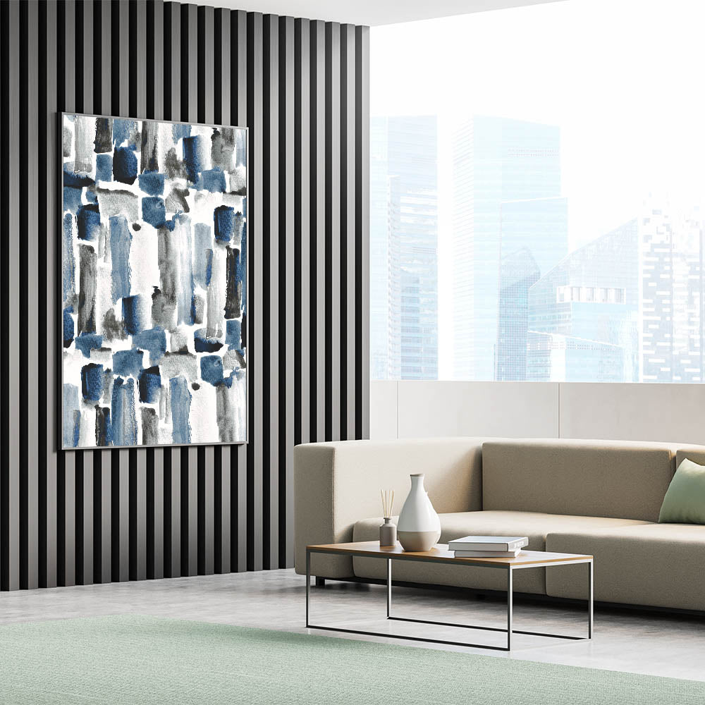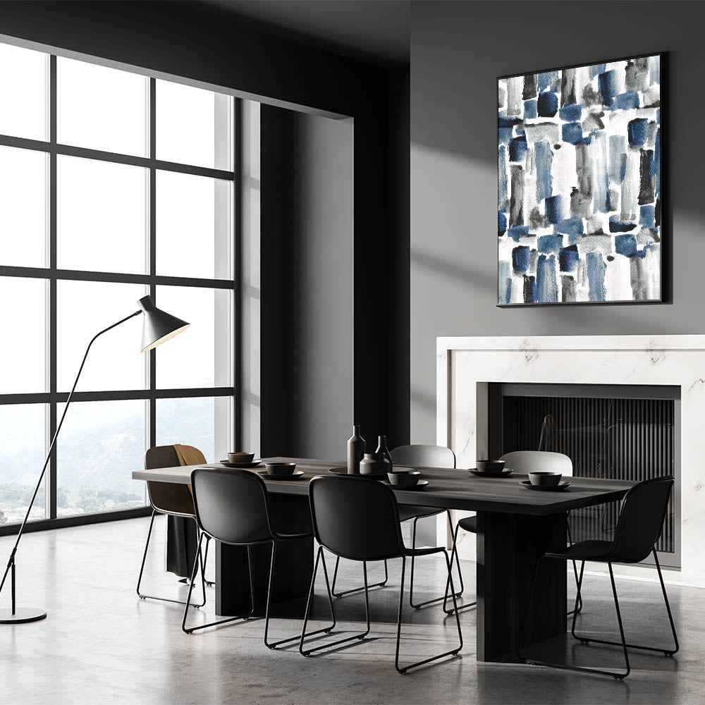This canvas wall art brings movement, texture, and refinement to your decor. Its navy and gray tones work beautifully in minimalist spaces, adding a modern edge without overwhelming the room. Perfect for bedrooms, offices, or modern hallways, this design blends art and architecture. Let contemporary art pieces like this elevate your home with bold simplicity.