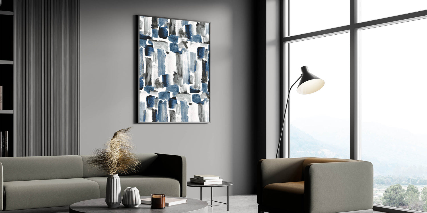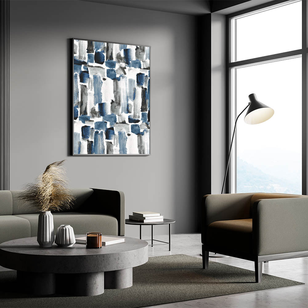 This bold piece from the Earthen Harmony Abstracts collection features layered brushstrokes in navy, gray, and white. Each mark captures the beauty of minimalism through motion and contrast, forming a striking yet balanced composition. With a cool-toned neutral palette, this abstract wall art complements both light and dark interiors. Ideal for anyone who appreciates modern abstract art with a contemporary rhythm.
