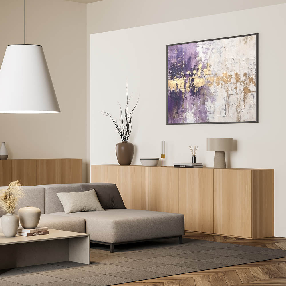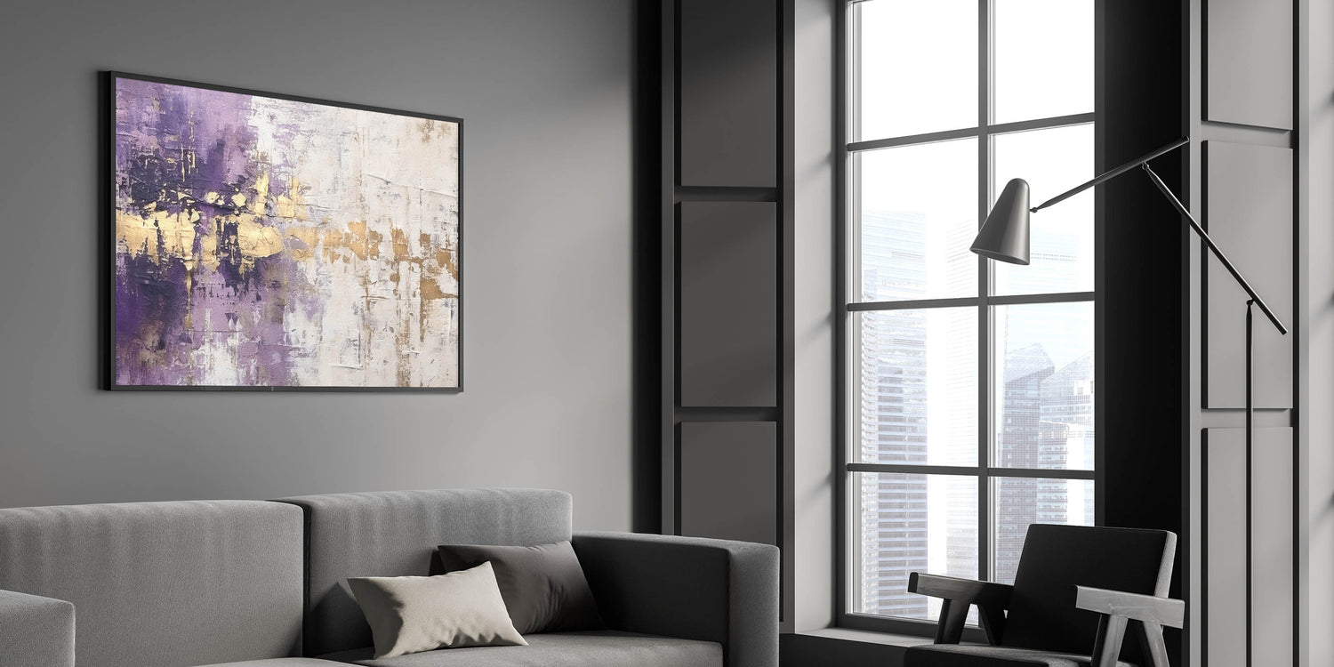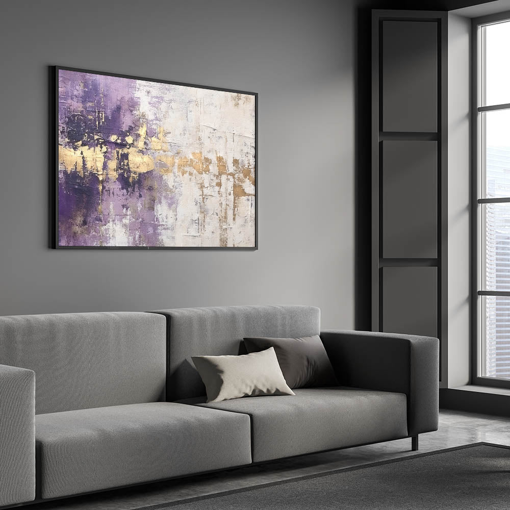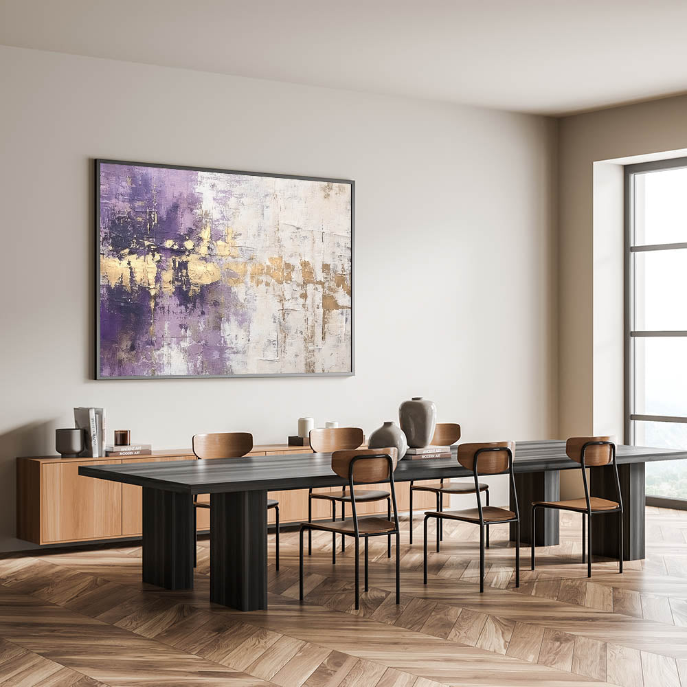 Bring a touch of luxury to your decor with this Elegant Rose Abstract Strokes Art. This stunning piece features a rich blend of deep purple, shimmering gold, and soft white hues. The bold strokes and textured finish create a sophisticated, layered effect, making this artwork an exquisite focal point for any room. The combination of royal purple and metallic gold adds a sense of opulence, while the white background provides a striking contrast. Perfect for modern, glam, and eclectic interiors, this piece radiates elegance and style.