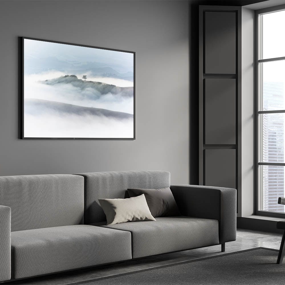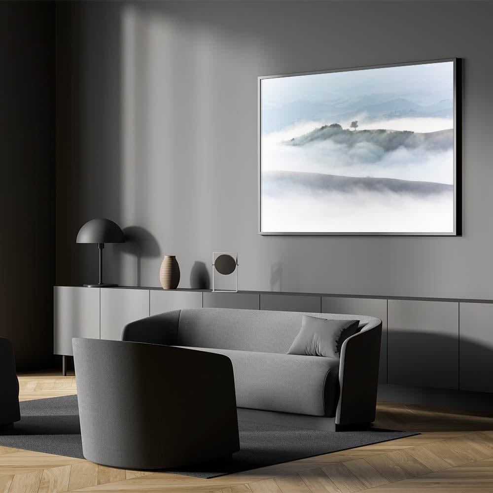 Large Abstract Wall Art – Serene Landscape Print in White & Gray
