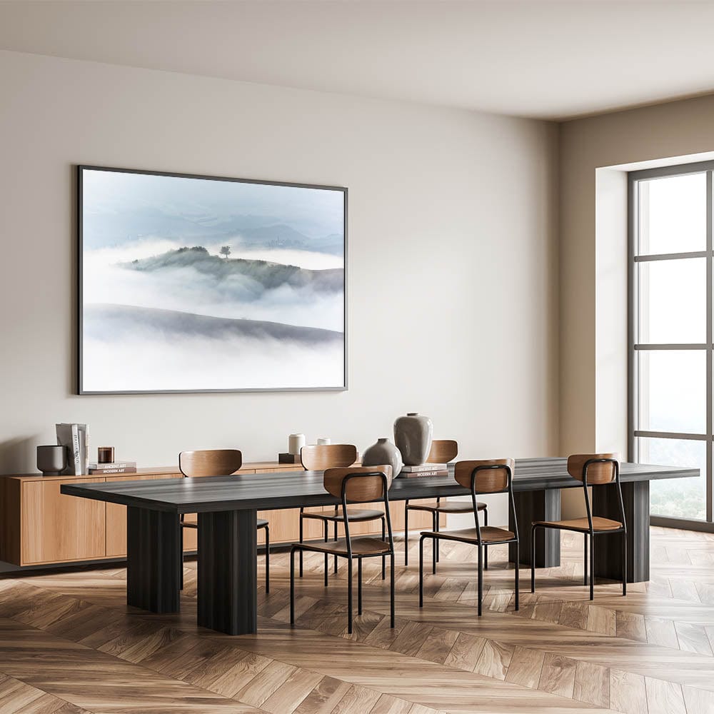 Immerse yourself in the tranquil beauty of this large abstract wall art, a breathtaking fusion of modern abstract paintings and nature-inspired minimalism. This moody modern wall art captures the ethereal essence of a misty landscape, featuring soft whites, gentle grays, and deep forest greens that blend seamlessly to create a peaceful atmosphere. Perfect for those who appreciate abstract canvas wall art with a calming and sophisticated aesthetic, this piece brings a sense of serenity to any space.