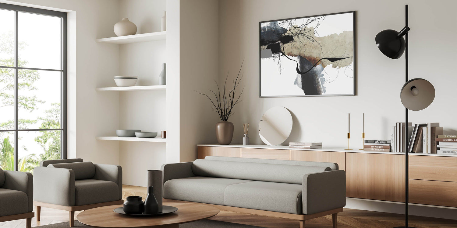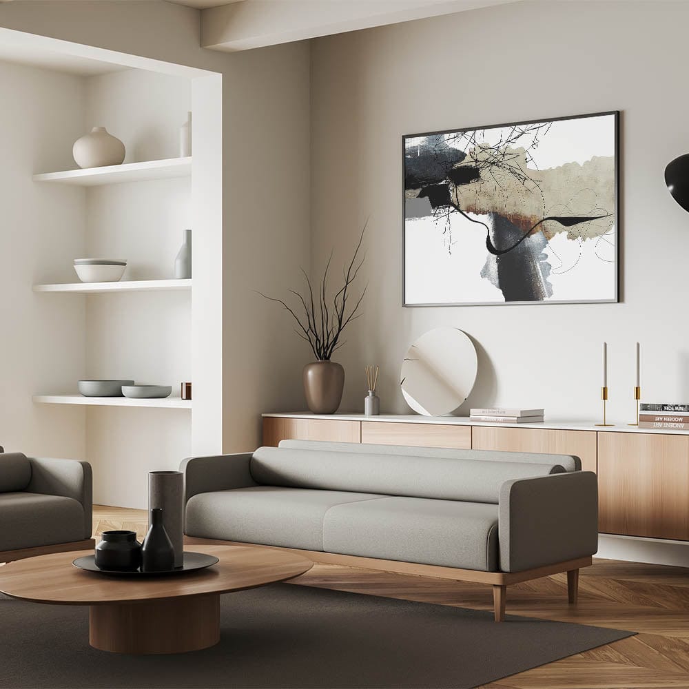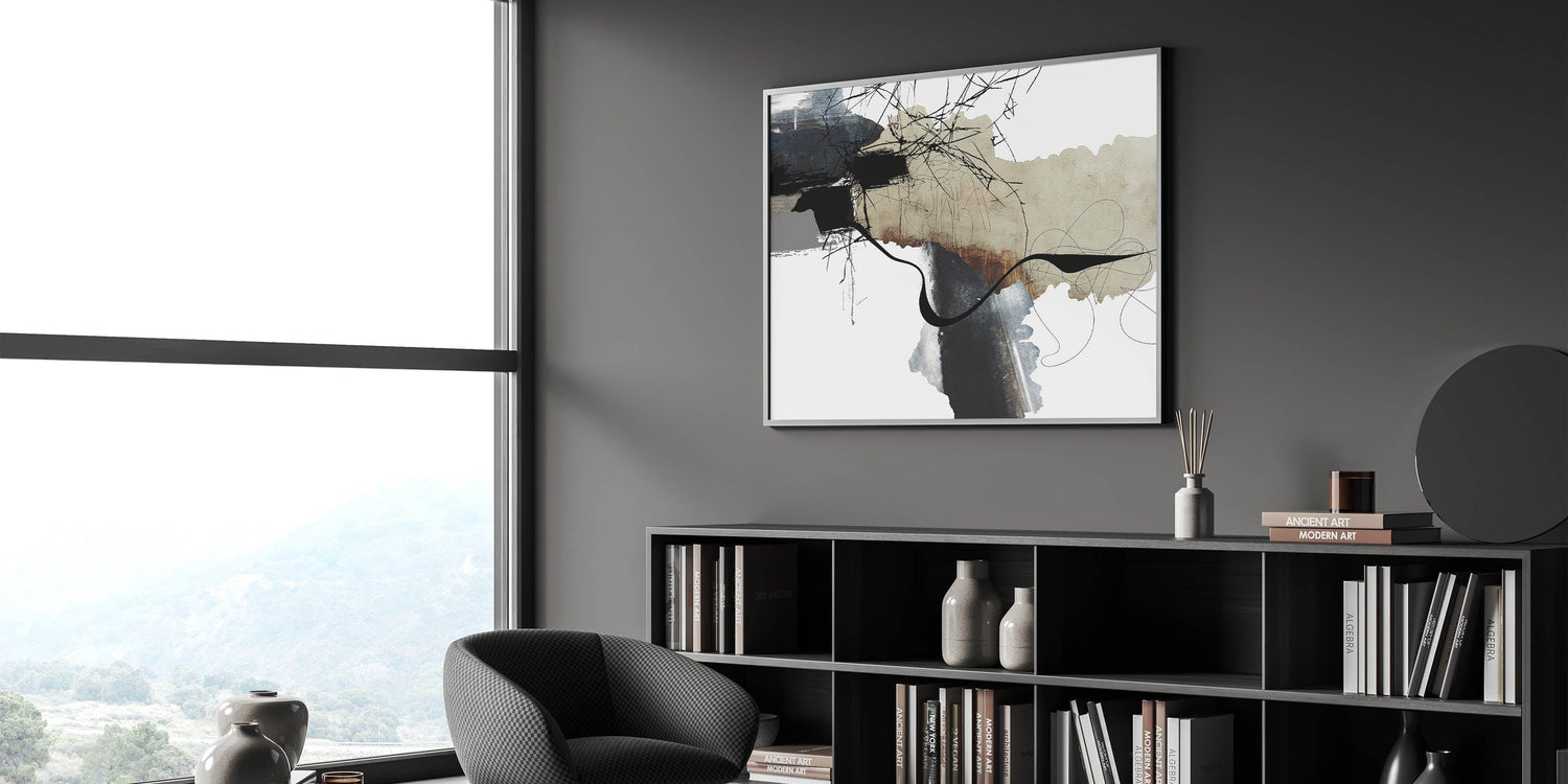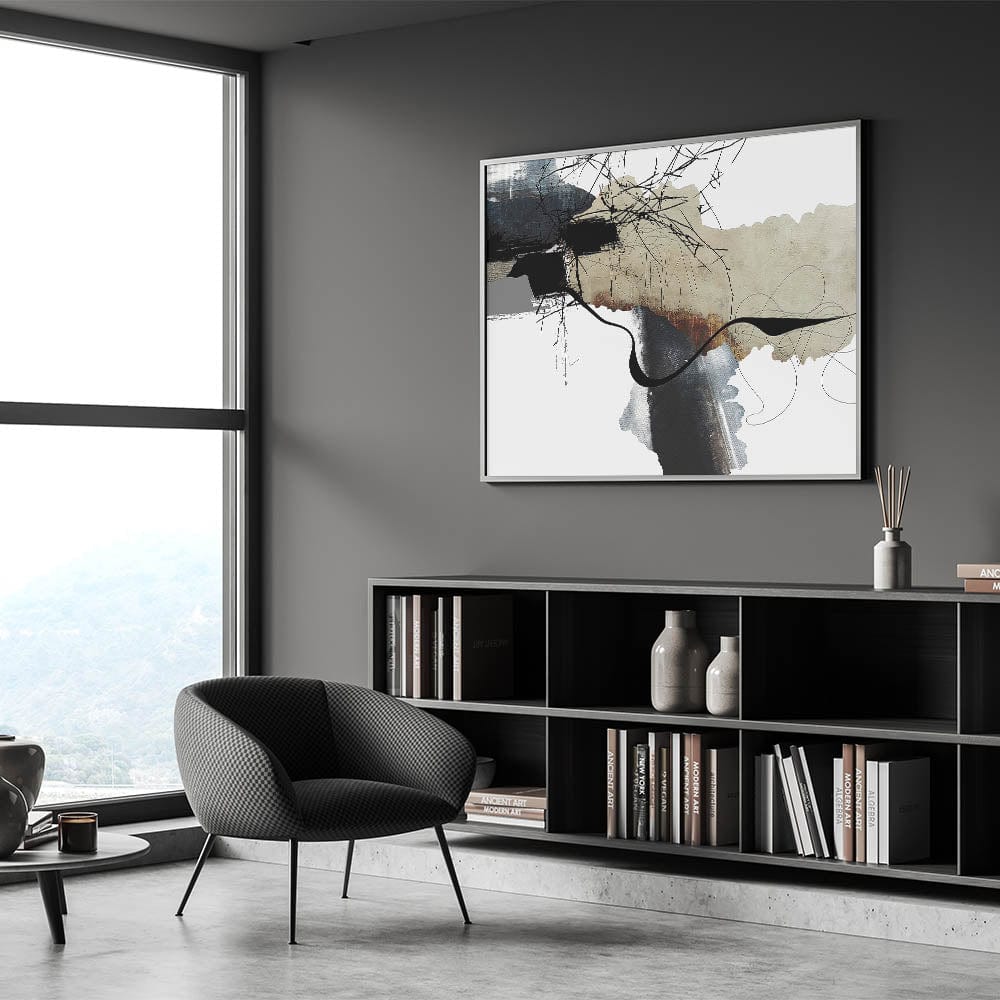 Moody Modern Wall Art – Abstract Canvas in Black, Beige & Gray