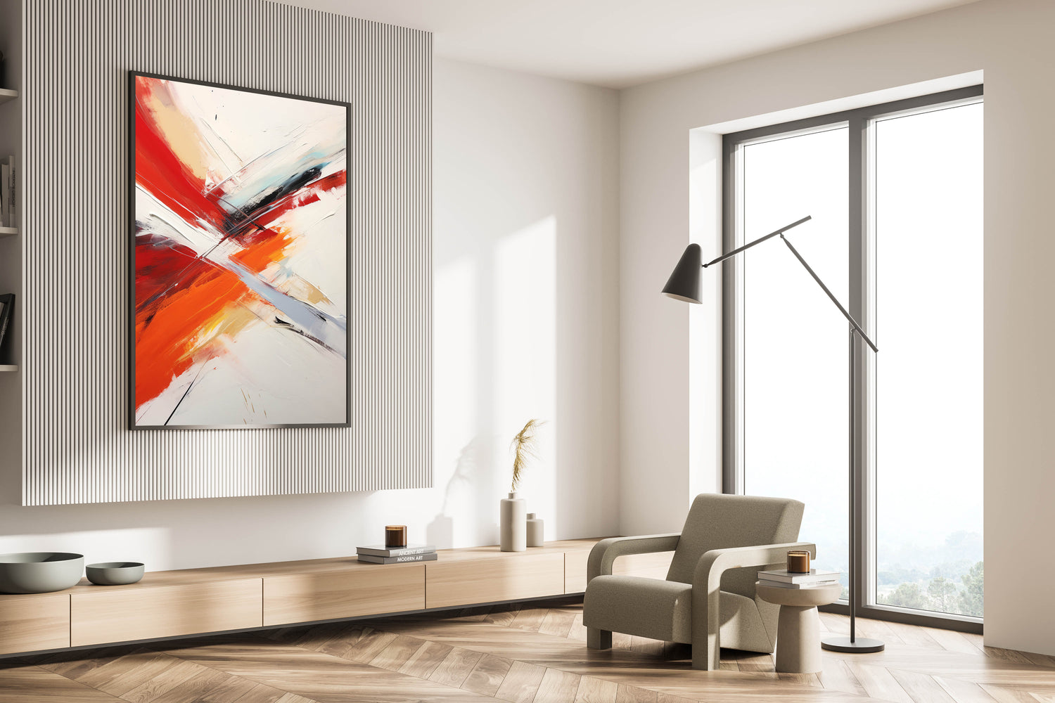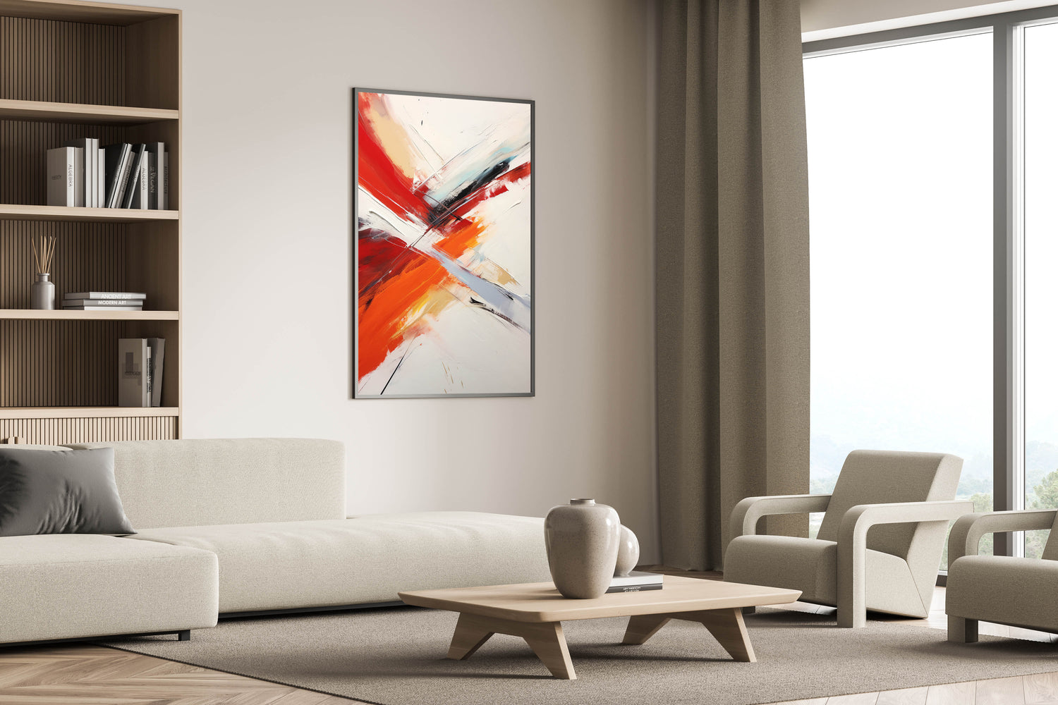 Infuse your space with energy and movement with this Red and Orange Abstract Strokes Canvas. This striking artwork features bold, sweeping strokes of red and orange contrasted against softer whites and subtle black accents. The dynamic composition creates a sense of motion and vitality, making it a perfect addition to modern and contemporary interiors. The bold colors and abstract design make this piece a captivating focal point, adding warmth and excitement to any room.