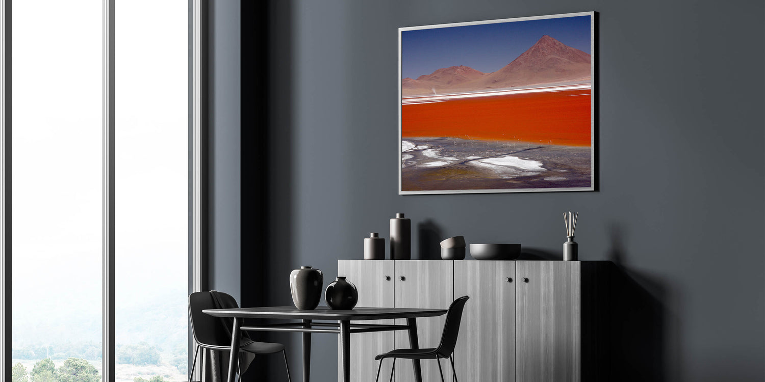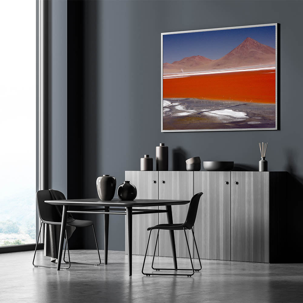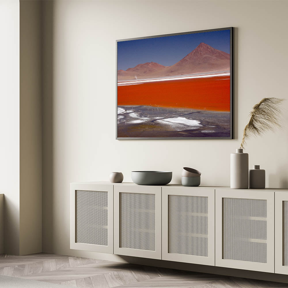 Embrace the surreal beauty of Bolivia with our "Laguna Colorada" wall art, a part of the exclusive Bolivia Scenery by Region collection. This striking artwork captures the intense red waters of Laguna Colorada, set against the stark, serene backdrop of the Bolivian Andes. The vivid colors and dynamic composition offer a window into one of South America’s most extraordinary landscapes.