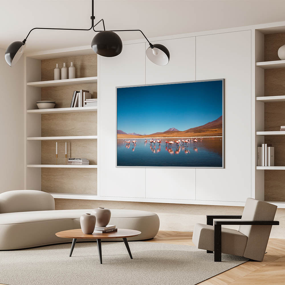 - Vivid Imagery: Captures the delicate hues of the flamingos against the natural landscape.