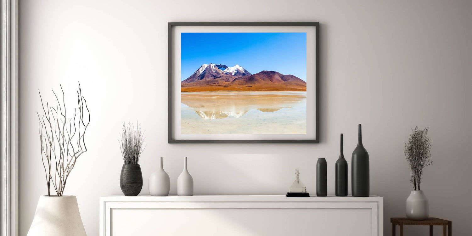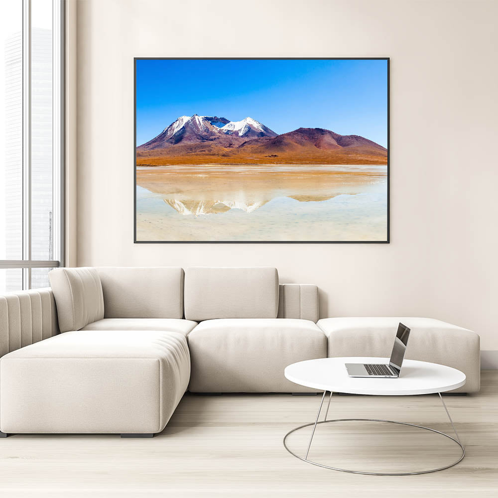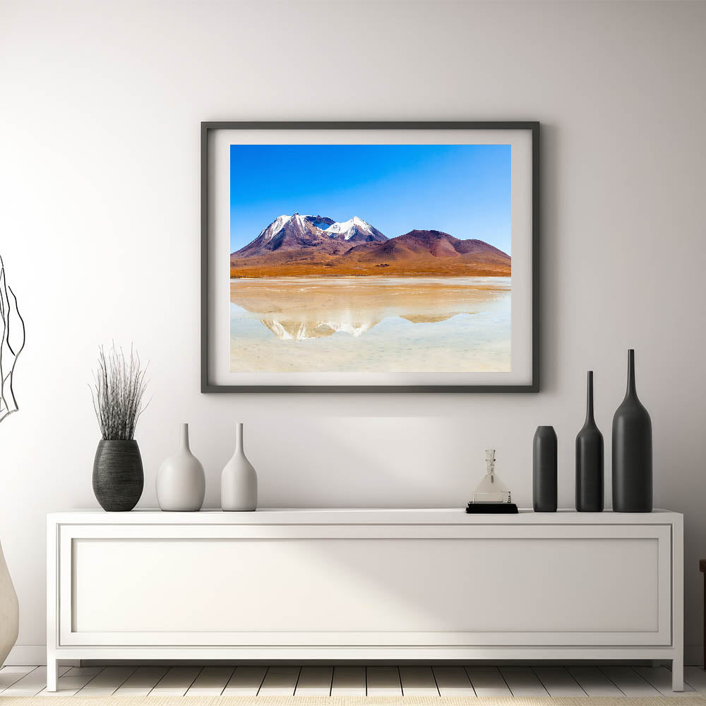 Experience the serene beauty of the Andean mountains with our "Mirror Lake Bolivia - Andean Reflections Wall Art," a captivating showcase from our Bolivia Scenery by Region collection. This artwork features a pristine mirror lake reflecting the towering snow-capped peaks, surrounded by the vibrant colors of the Altiplano landscape, embodying the tranquil and untouched nature of the Bolivian highlands.