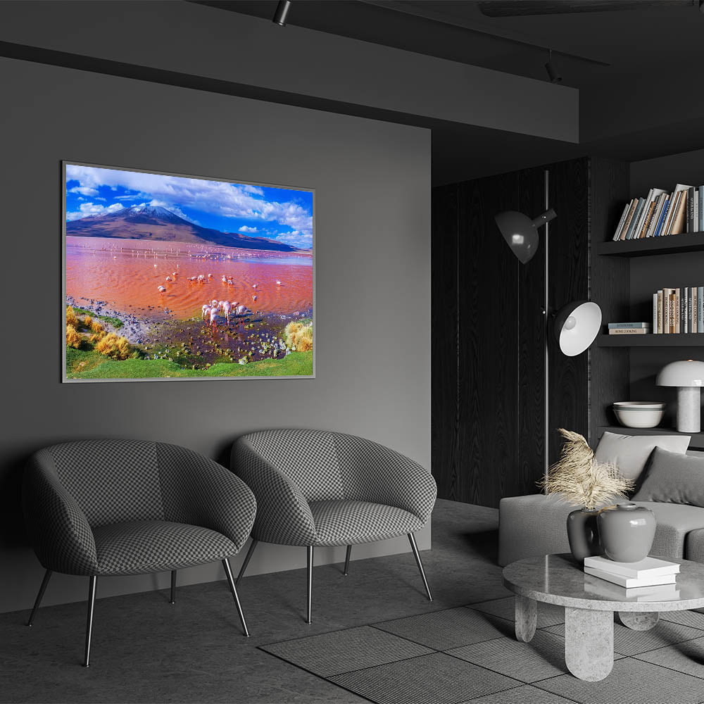 Panoramic Flamingo Lake Art - Colorful Bolivia Landscape
