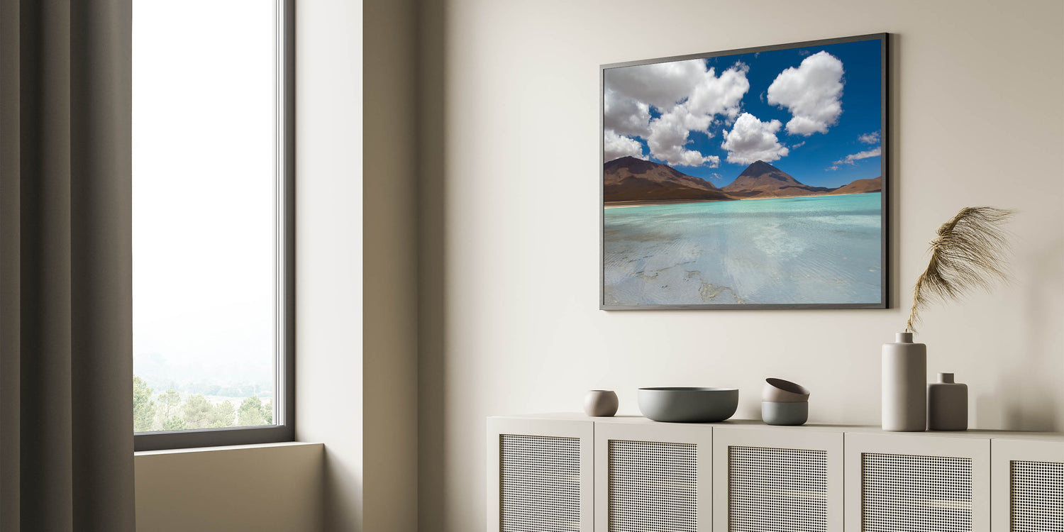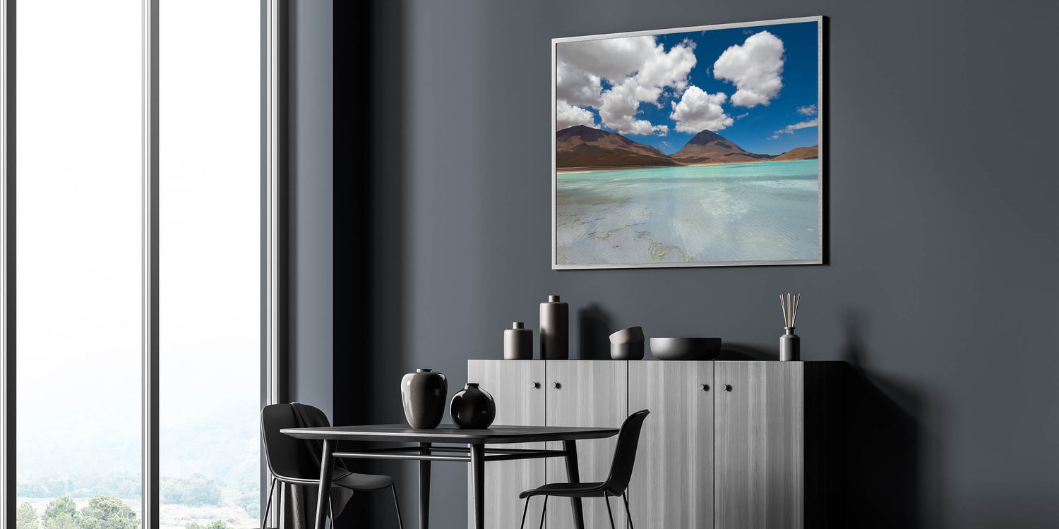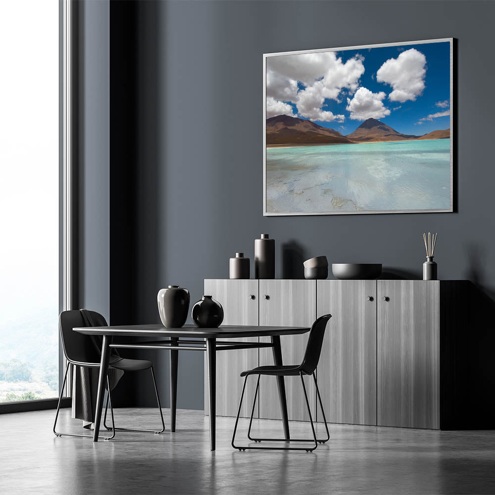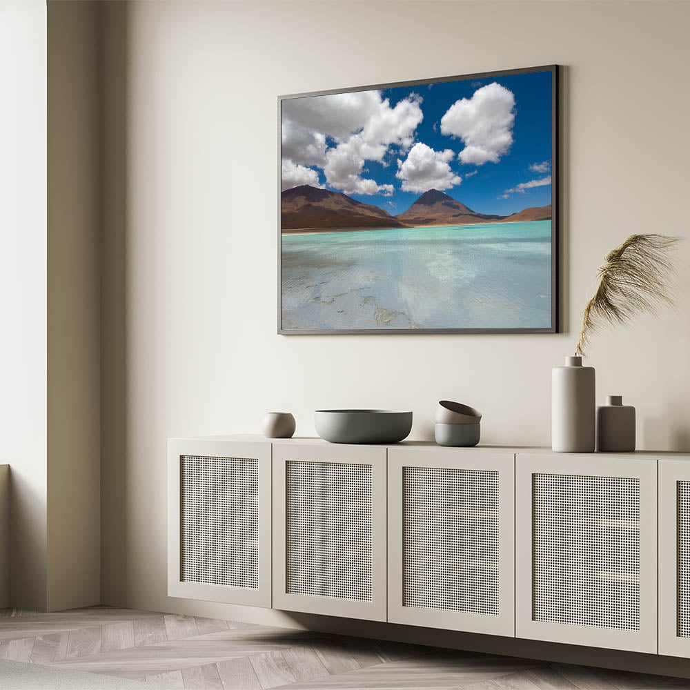 Experience the magnificence of Bolivia with our "Turquoise Waters & Andes Peaks - Bolivia Landscape" wall art. This piece captures the serene beauty of Bolivia's high-altitude landscapes, where crystal-clear turquoise waters meet the majestic Andes mountains.