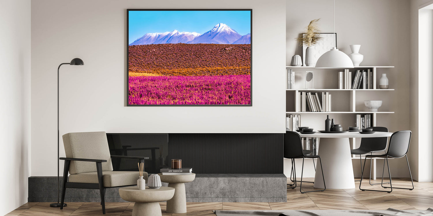 Perfect for those who appreciate bold landscapes or wish to add a dynamic and colorful element to their decor, this piece captures the essence of Bolivia’s natural beauty and transforms any room into a more lively and inviting space.