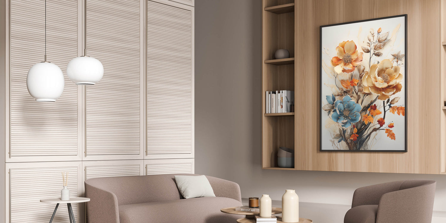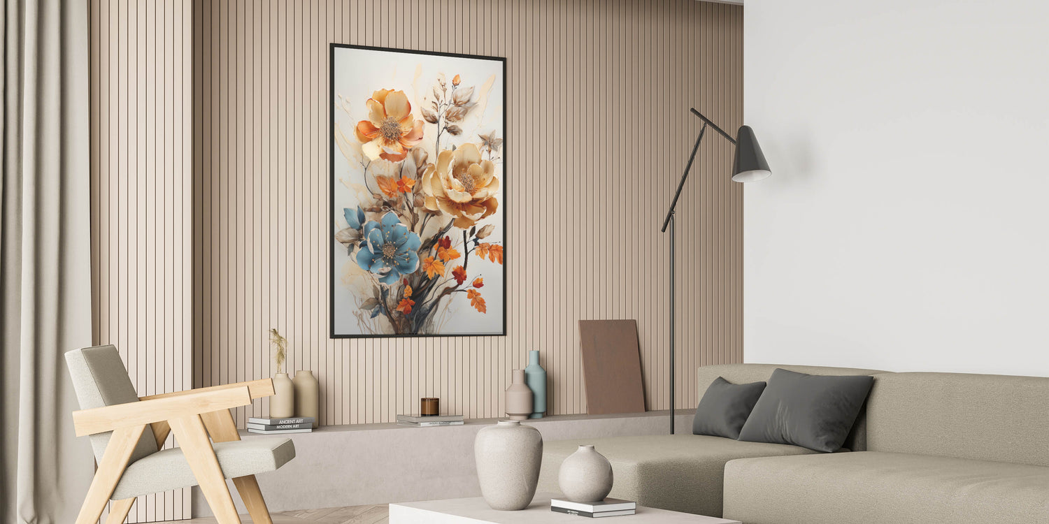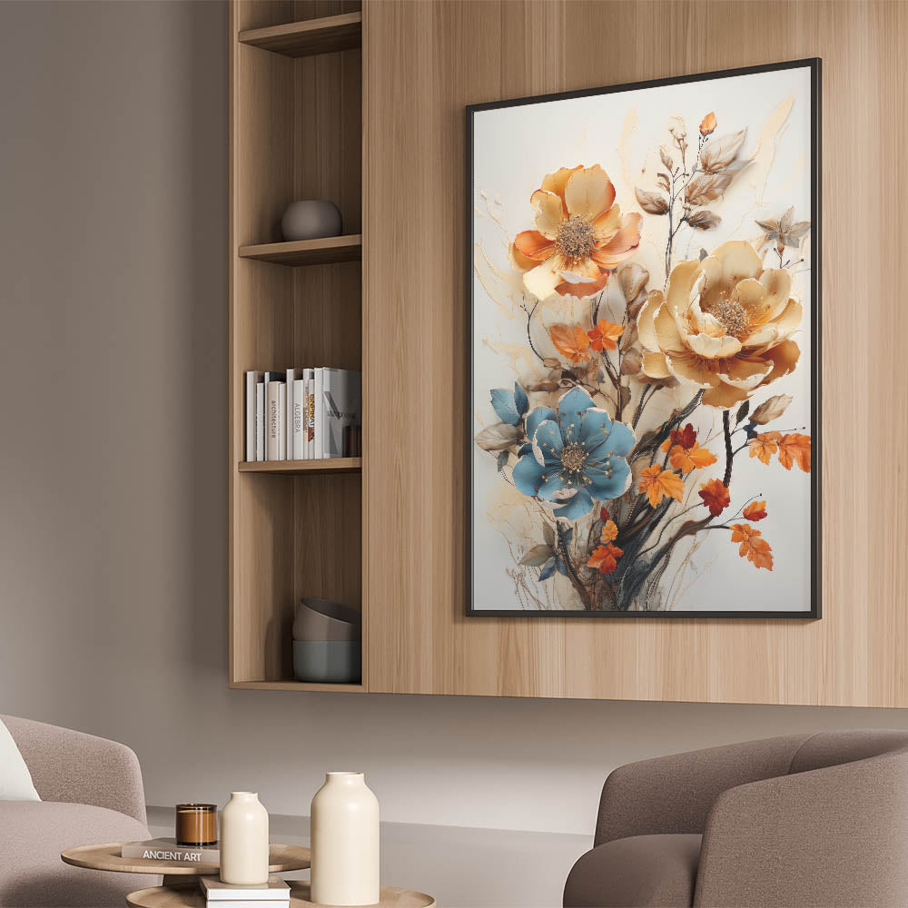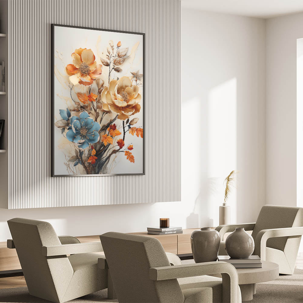 Ideal for living rooms, bedrooms, or office spaces, this floral artwork adds a graceful and calming atmosphere. Let this elegant autumn-inspired print transform your decor with its natural beauty and warmth.