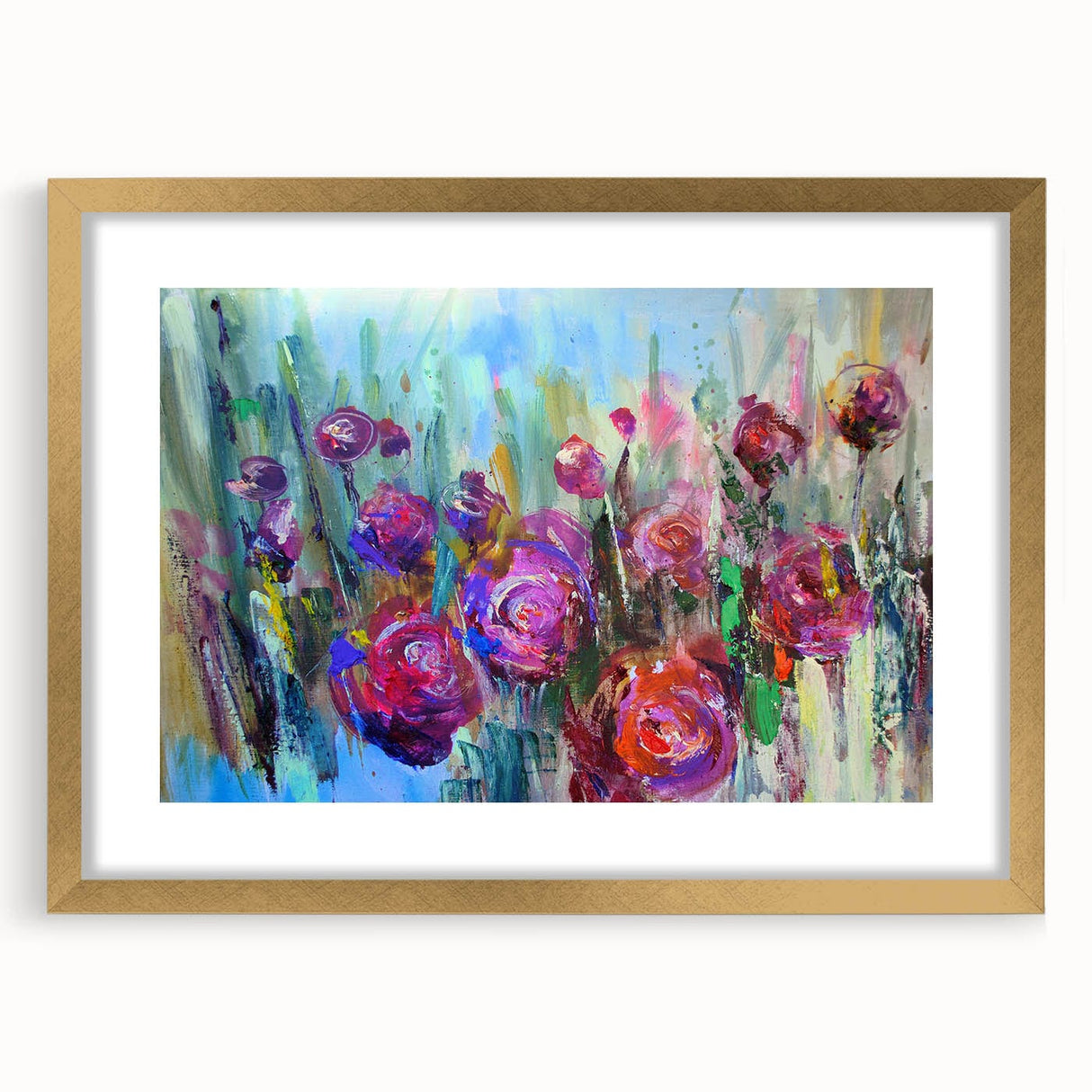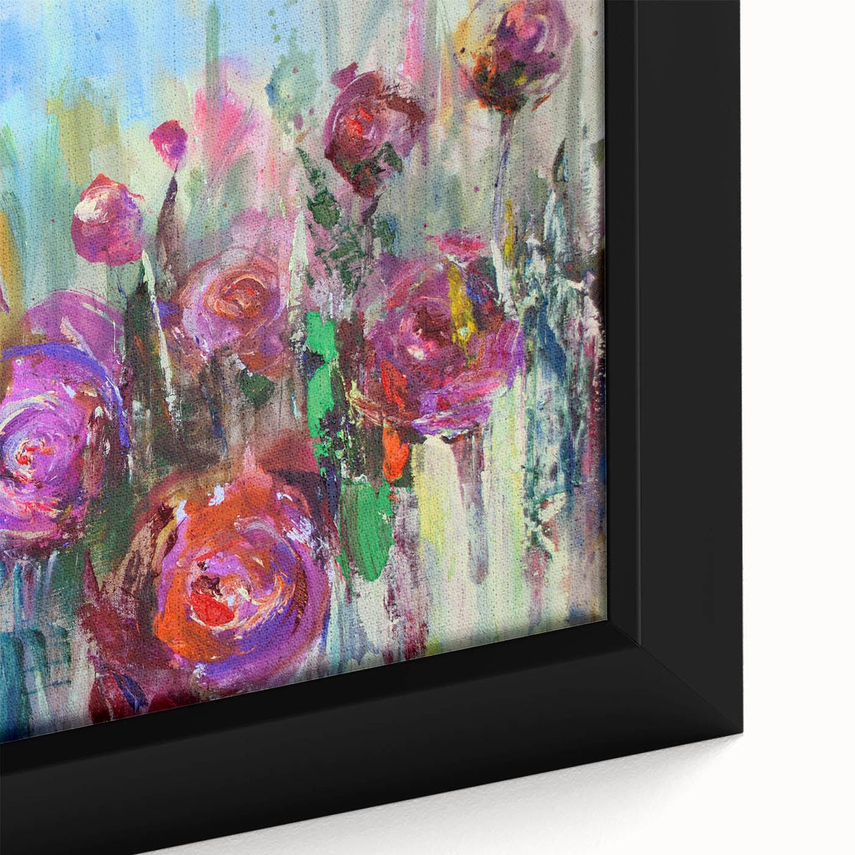 Bring the beauty of nature into your home with this abstract canvas wall art, featuring an expressive mix of pink, purple, red, green, and blue hues. The bold brushstrokes and rich textures capture the movement of blooming flowers, creating a stunning visual impact. This modern abstract painting adds warmth and sophistication to any space.