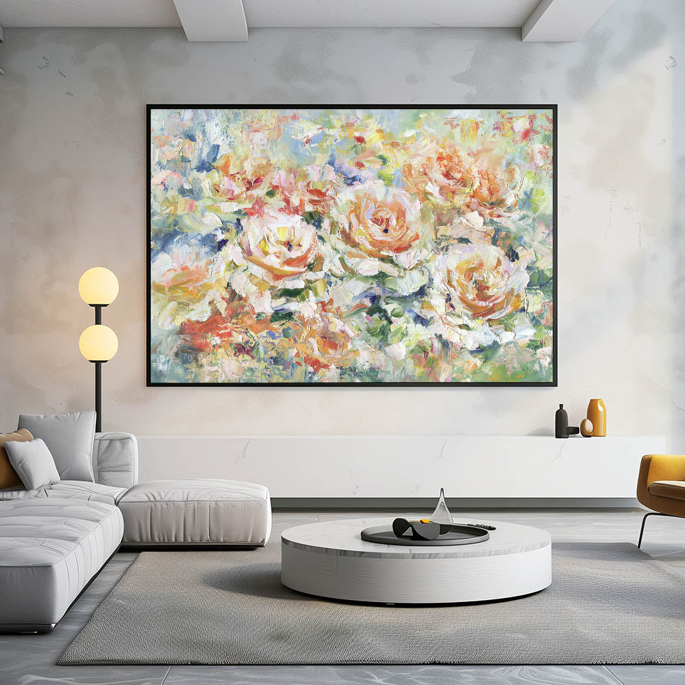 Add a touch of modern elegance to your space with this stunning Abstract Floral Art, showcasing delicate blush pink and coral blooms set against a soft, neutral backdrop. The gentle yet vibrant colors and flowing shapes create a serene and sophisticated atmosphere, making this Modern Floral Abstract ideal for any room in your home. Perfect for creating a calming ambiance in living rooms, bedrooms, or office spaces.