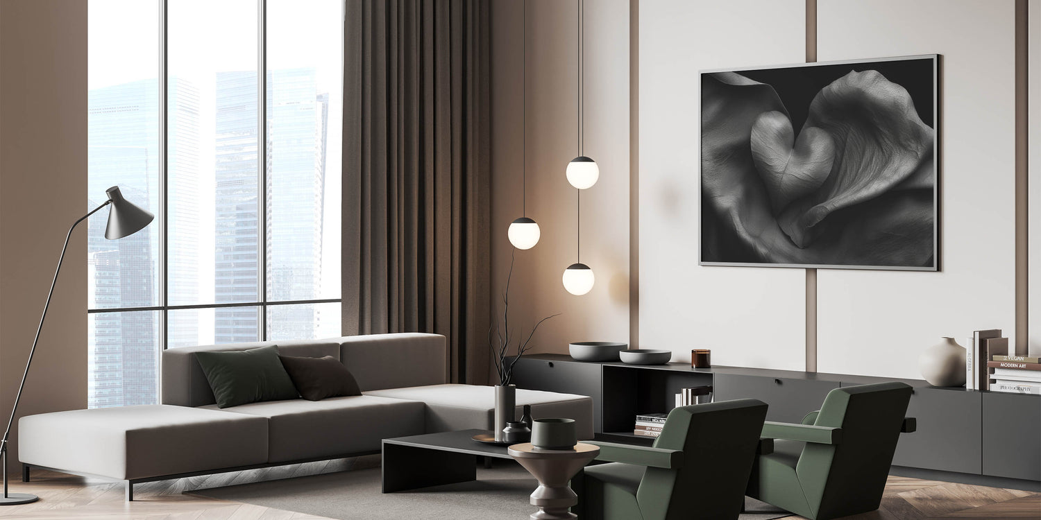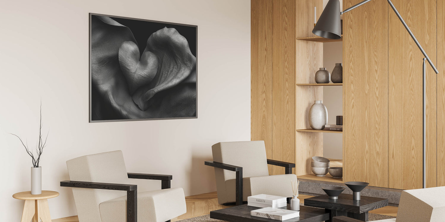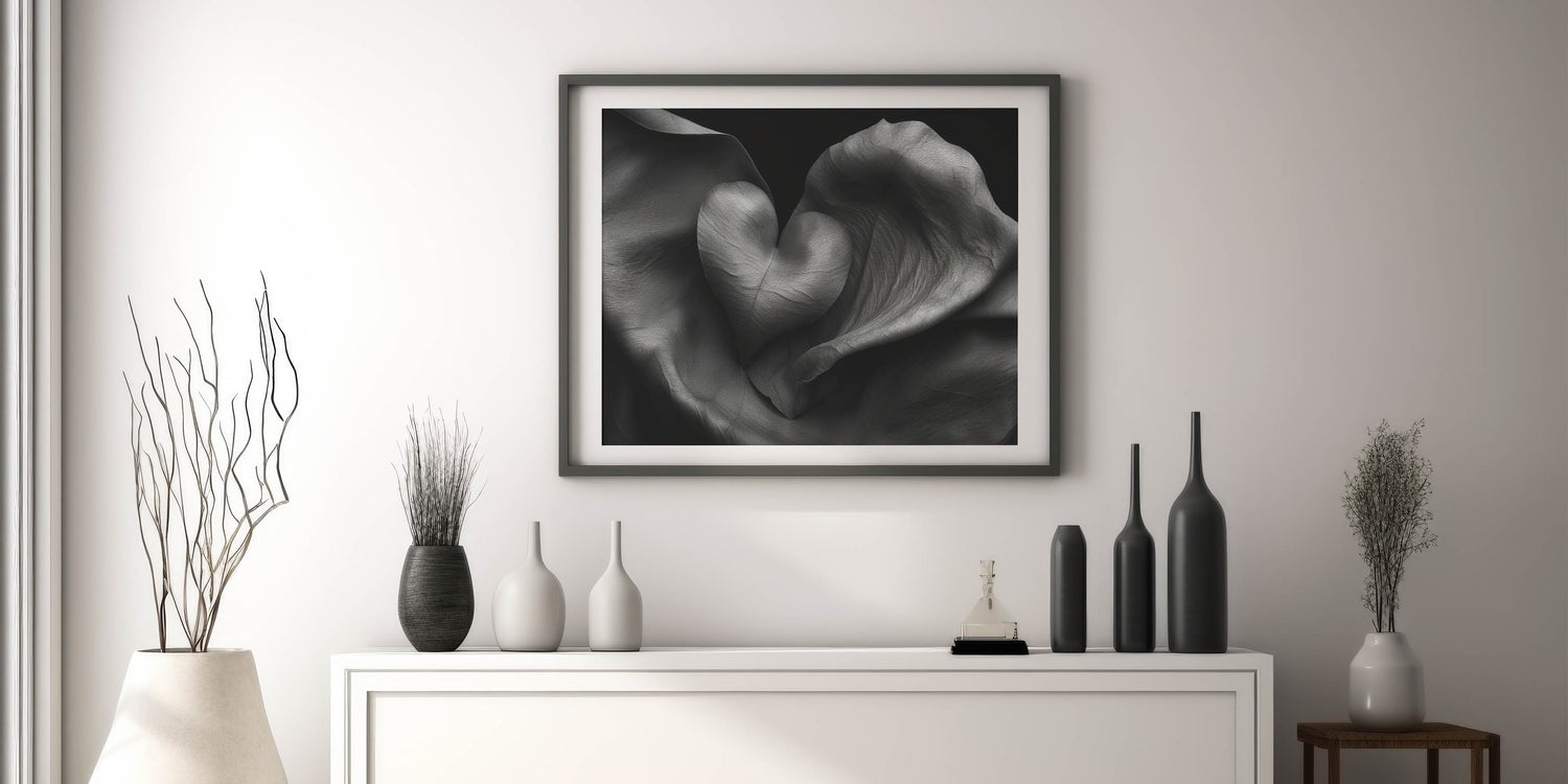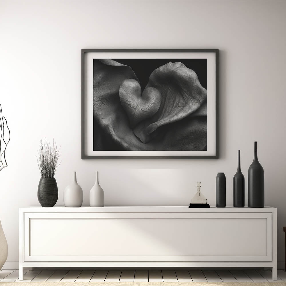 Introduce modern elegance to your space with this striking Abstract Geometric Wall Art, a harmonious blend of soft folds and a bold heart design. This piece features intricate textures in monochromatic shades, creating a timeless statement for any room. Perfect for those who admire modern home decor, this artwork brings depth and sophistication to living spaces, offices, or bedrooms.