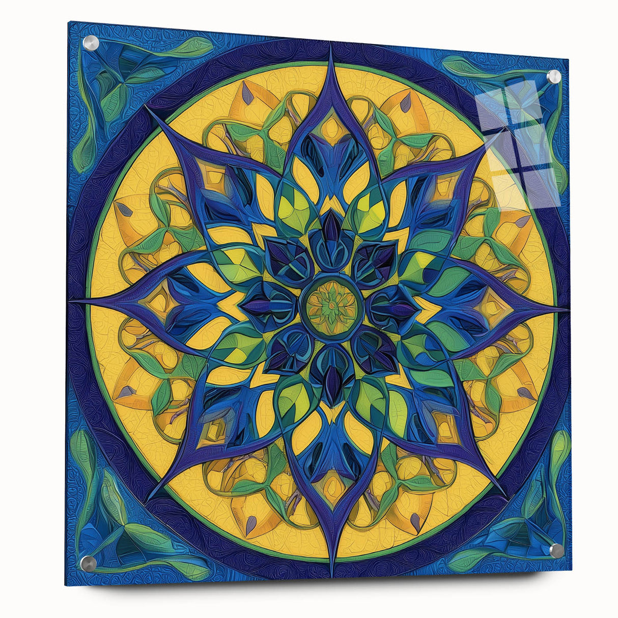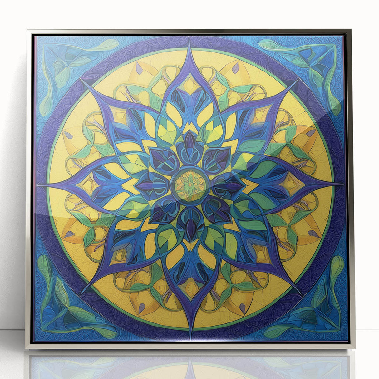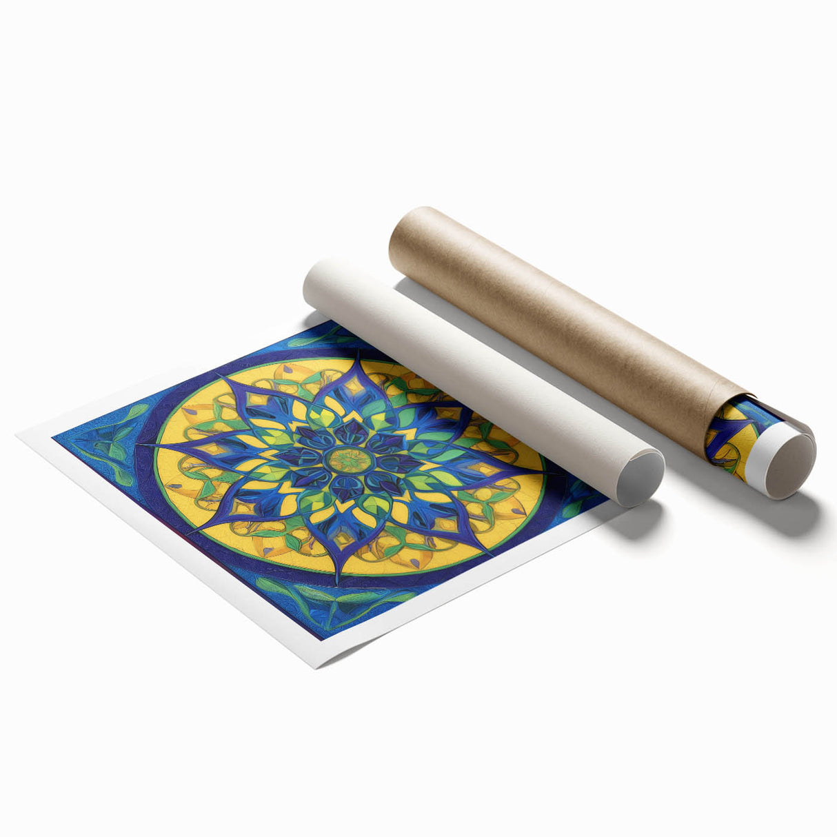Transform your space with this stunning geometric abstract wall art, featuring a vibrant mandala design in deep blue, yellow, and green tones. This intricate artwork captures the beauty of geometric patterns and contemporary art pieces, creating a harmonious blend of color and symmetry. Perfect for living rooms, bedrooms, or creative spaces, this design brings an energizing yet calming presence to any setting.