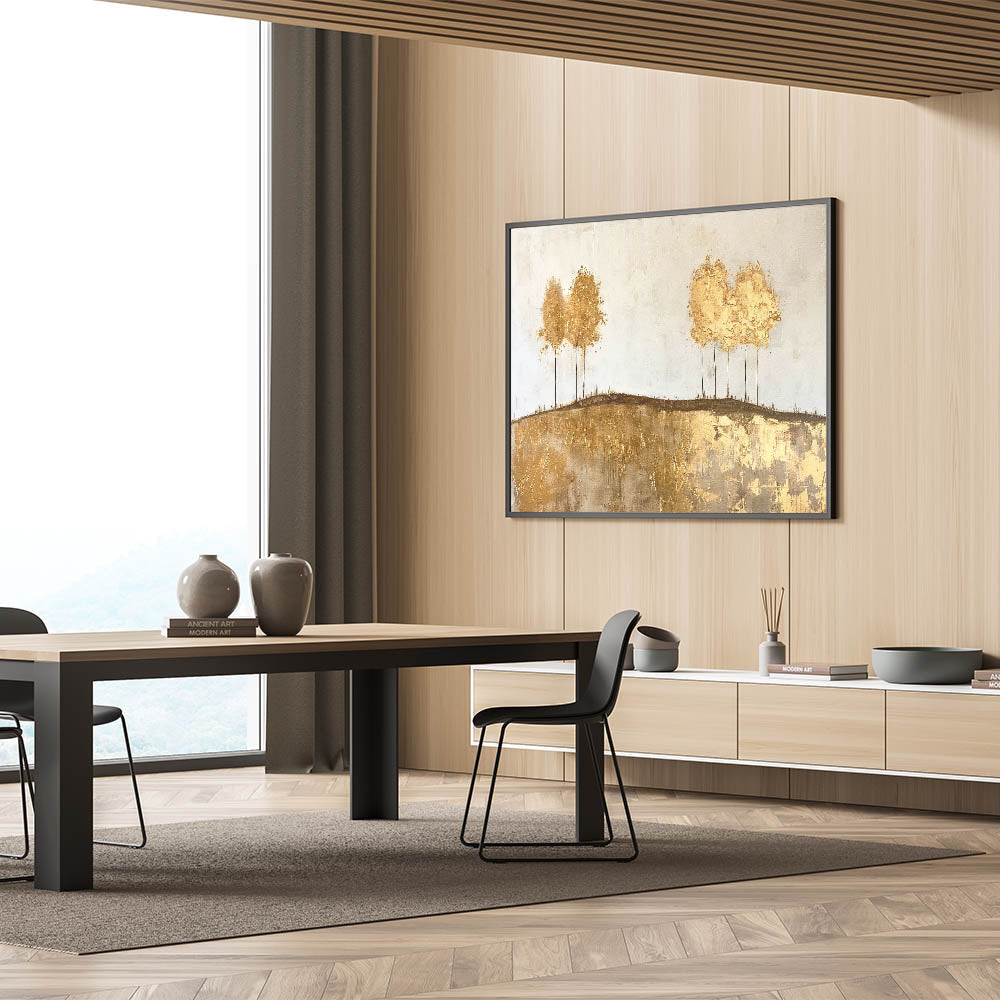 Abstract Golden Trees Landscape Art - Minimalist Nature Canvas Decor