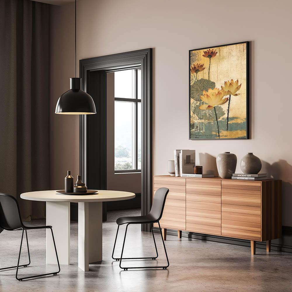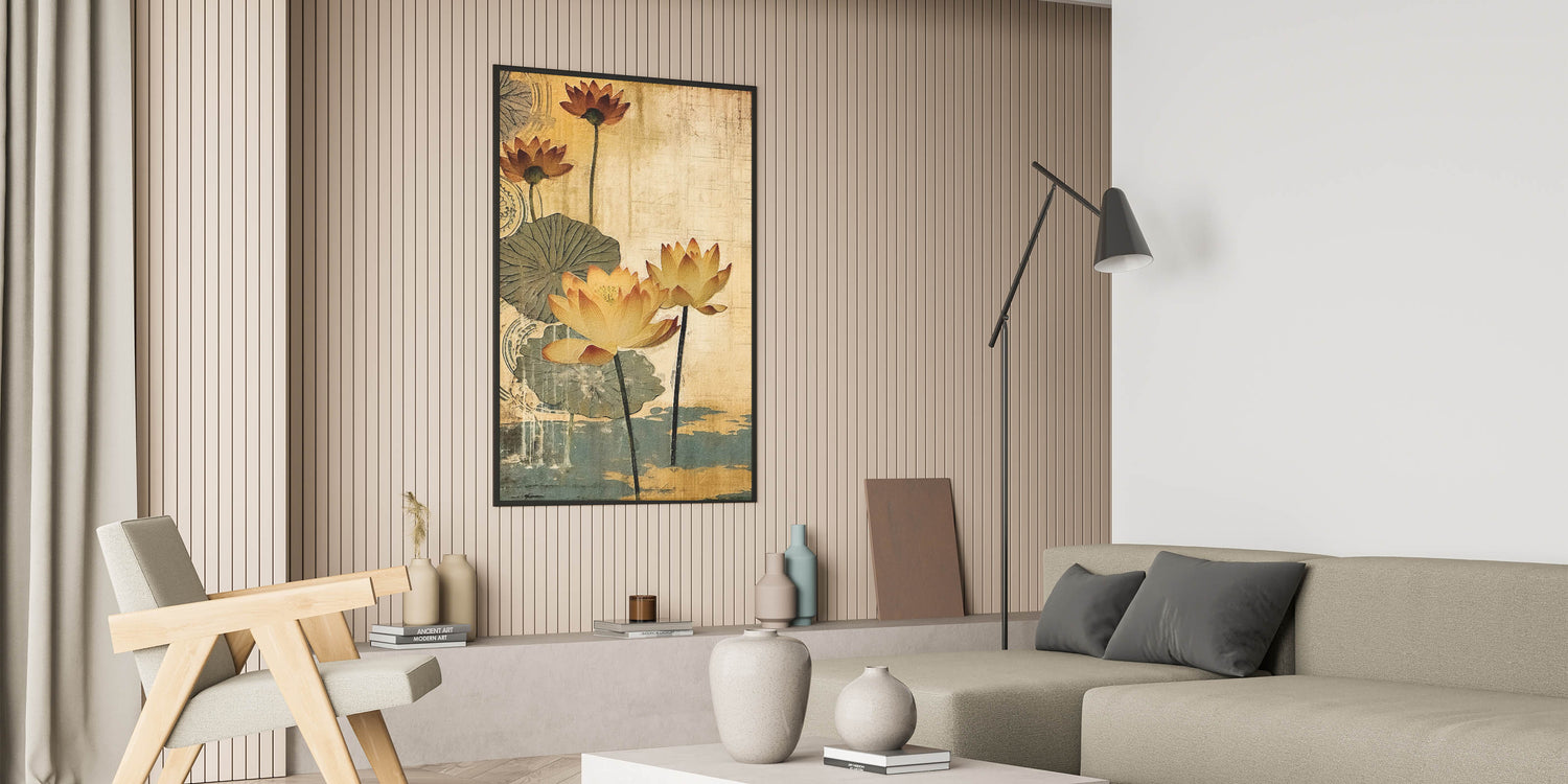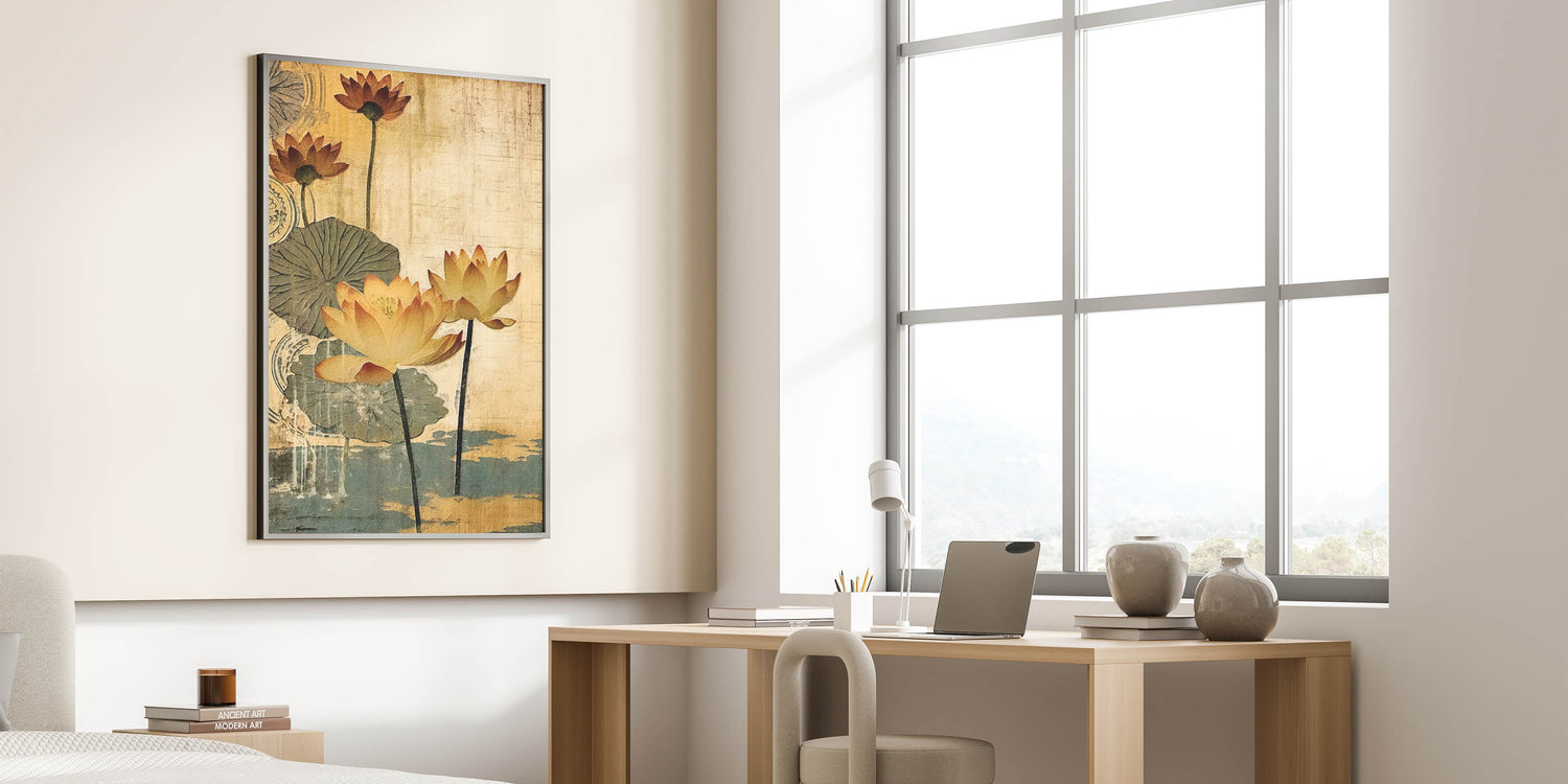 Perfect for living spaces, meditation areas, or offices, this lotus floral artwork introduces a warm, peaceful ambiance to your environment. Its rich color palette and detailed design make it a captivating focal point in any room.