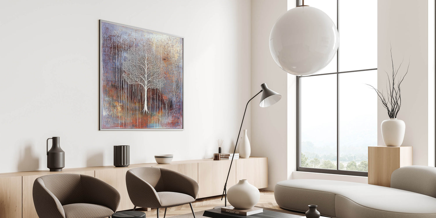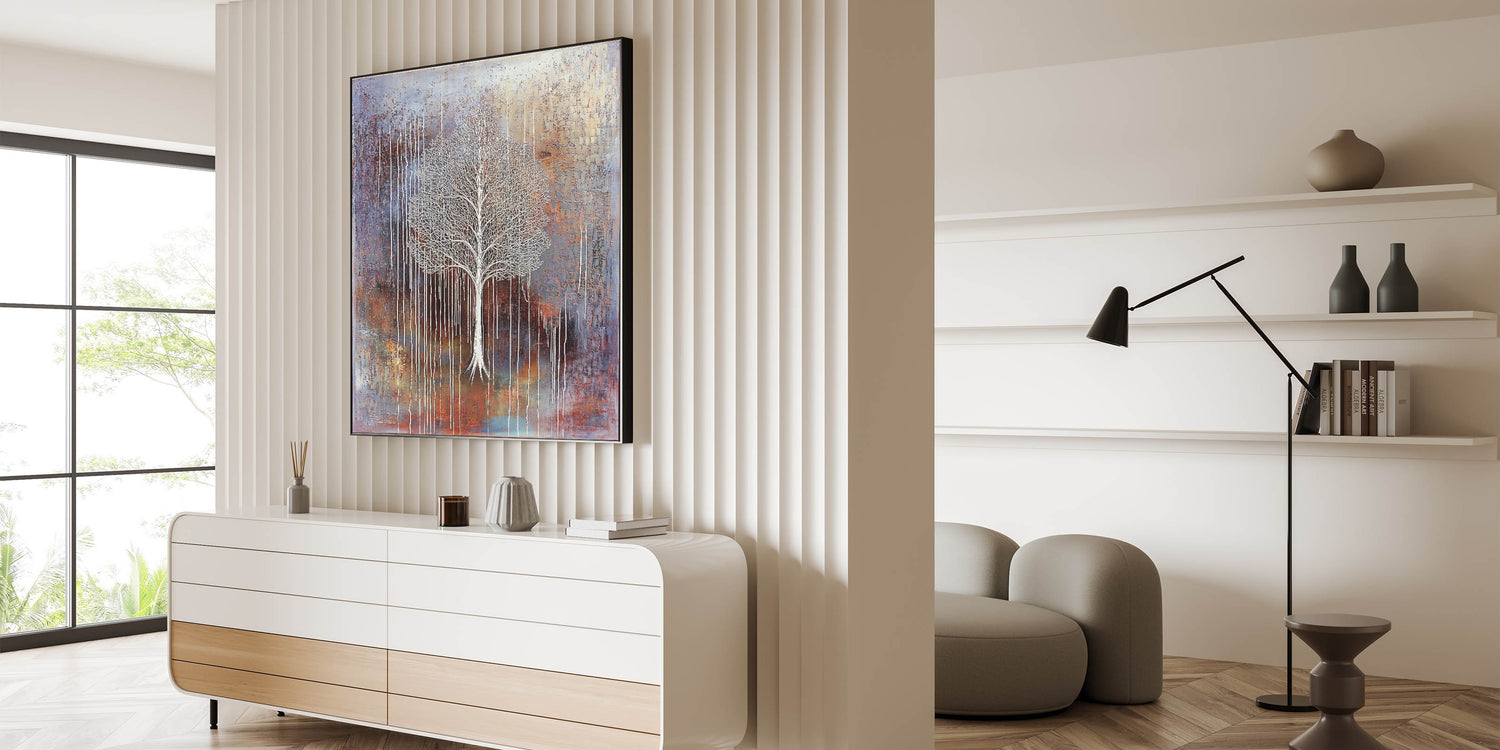 Abstract White Tree Canvas - Vibrant Textured Modern Wall Décor