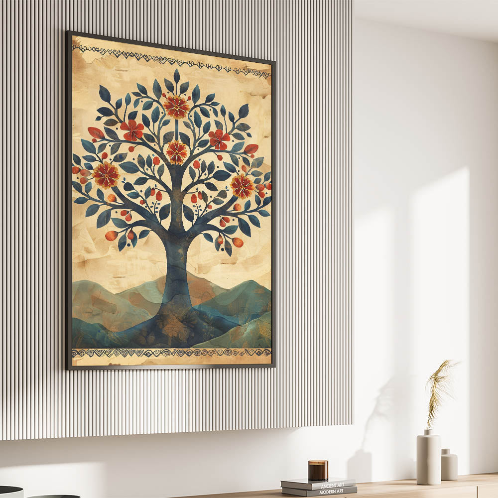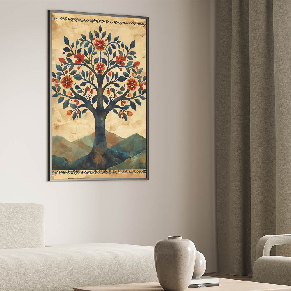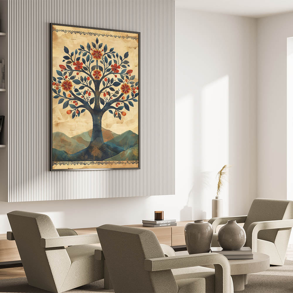 Perfect for anyone who loves abstract botanical wall art with a cultural flair, this beautiful floral canvas print adds personality and warmth to your home. Let this artistic tree design inspire a sense of growth, resilience, and natural beauty in your space.