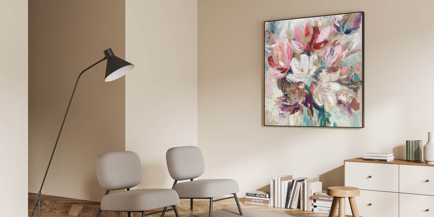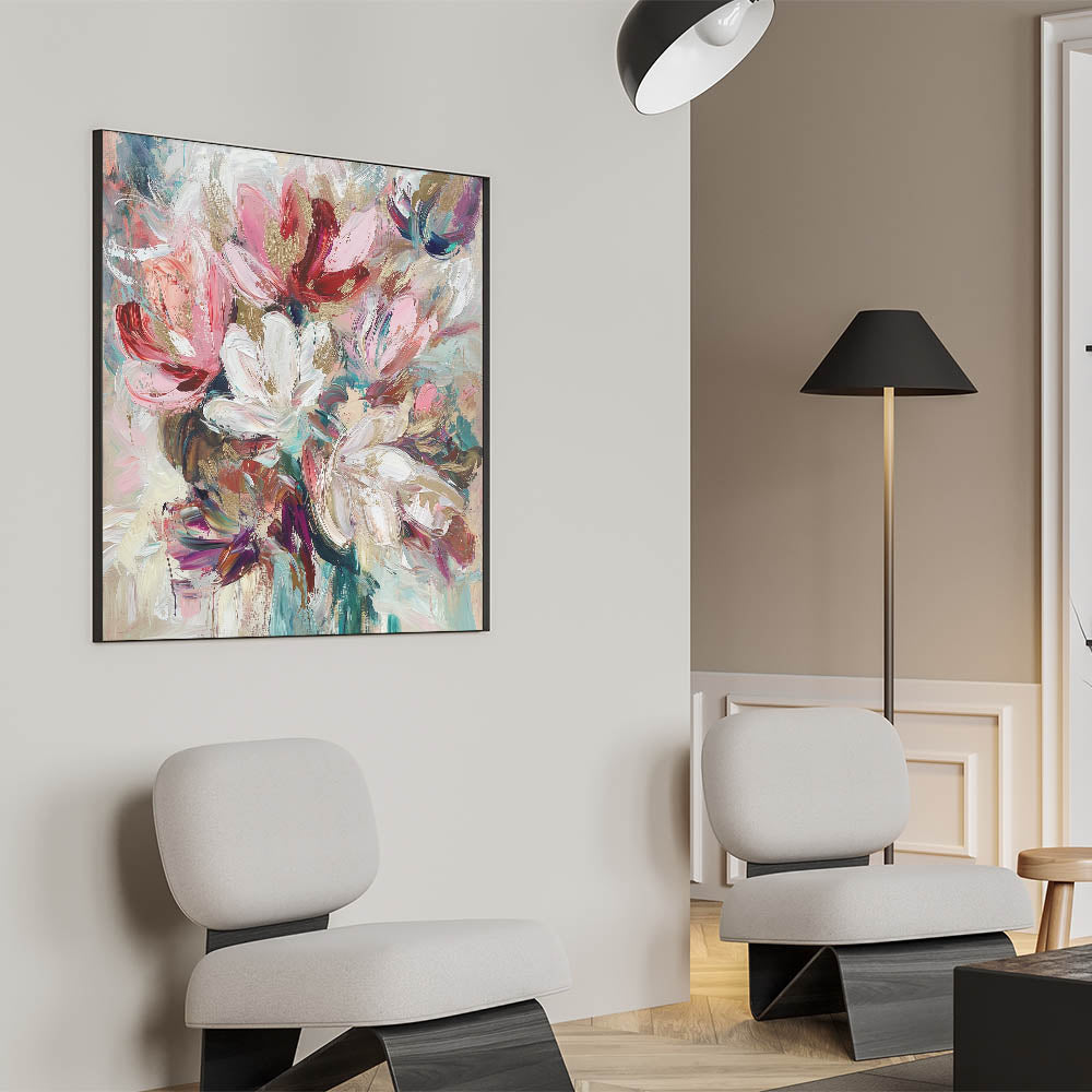 - Stunning abstract floral art with a delicate and vibrant color palette.