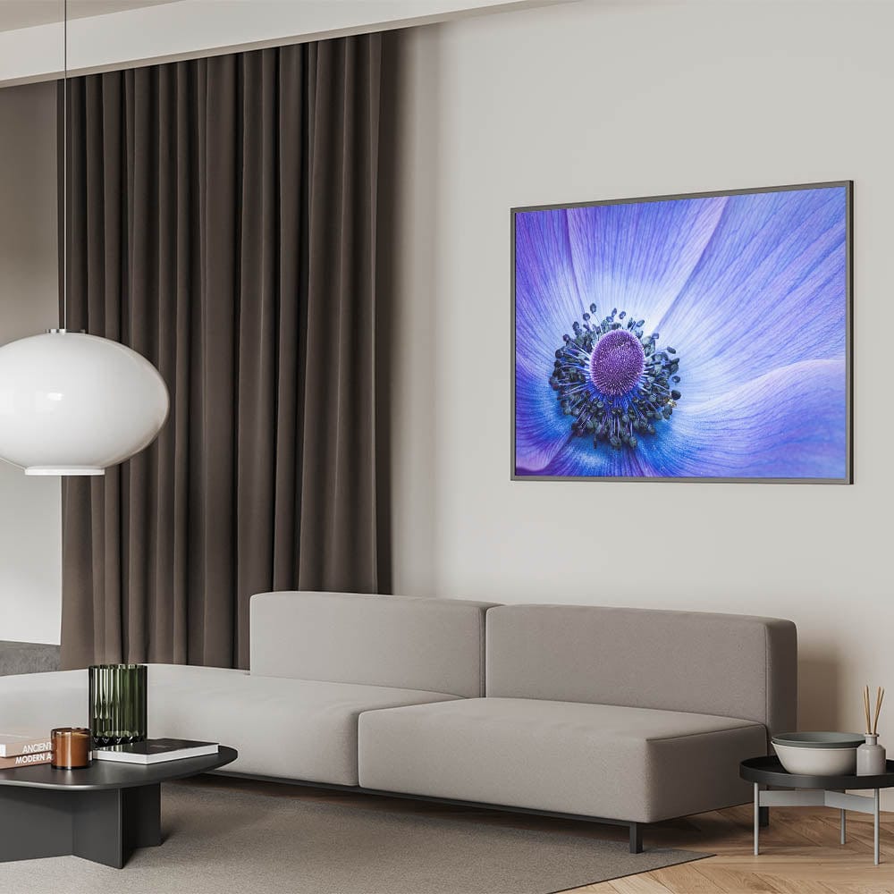 Immerse yourself in the beauty of nature with this exquisite fine art photography acrylic print. Featuring a mesmerizing macro close-up of a blue anemone flower, this piece captures the intricate details of its velvety petals and striking center. The soft gradient of blue and violet hues adds depth, making it a visually soothing and elegant addition to any space.