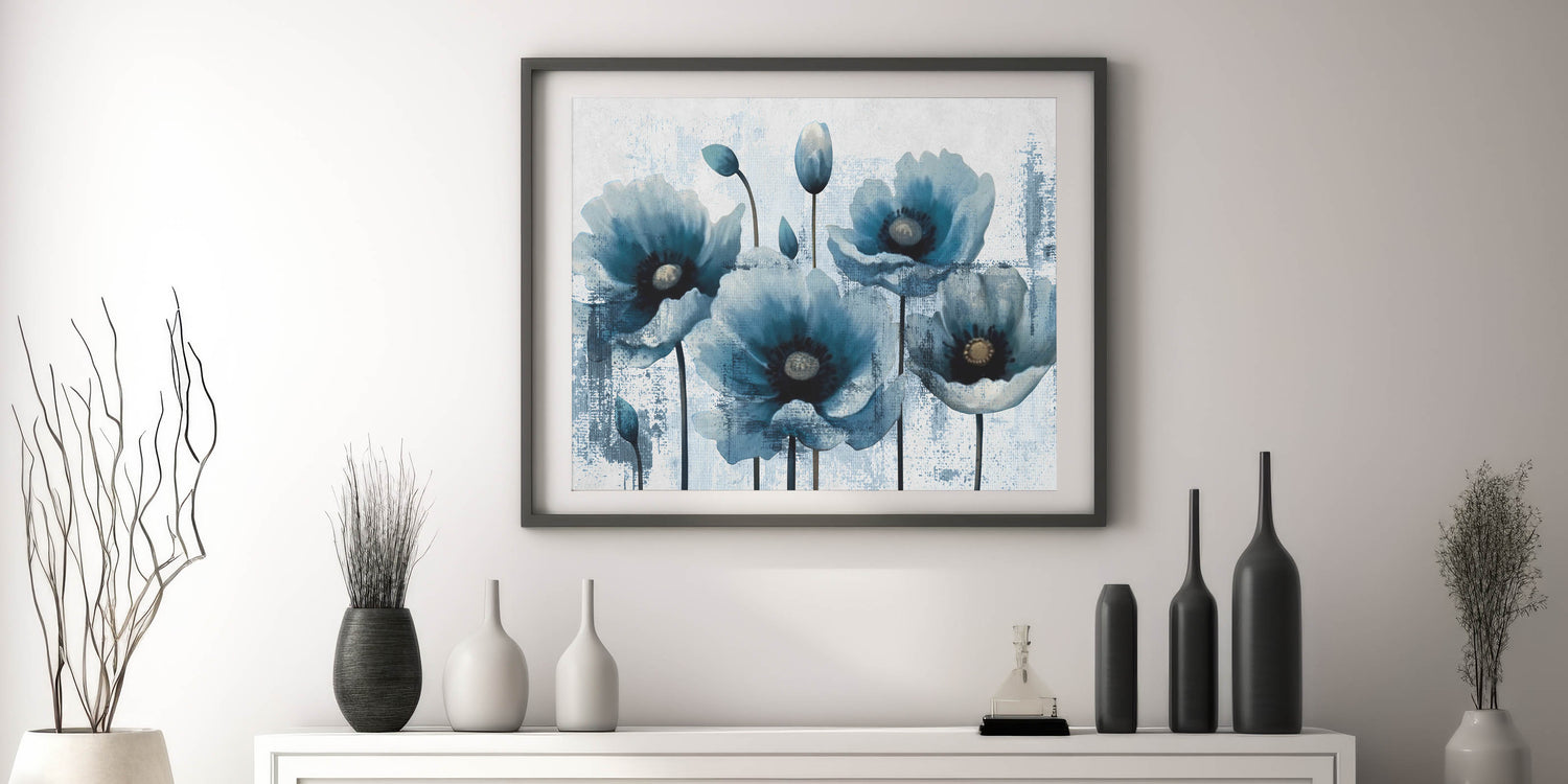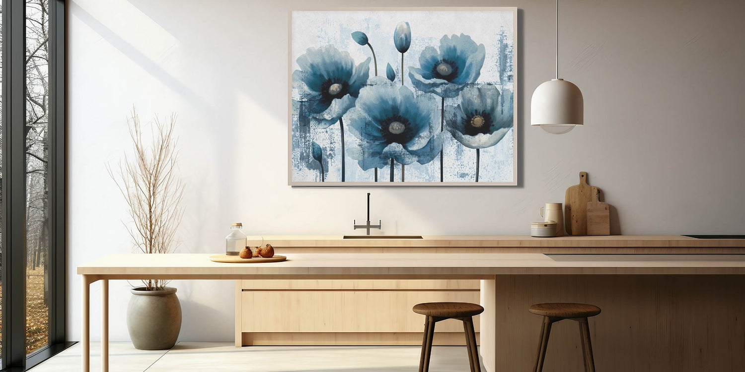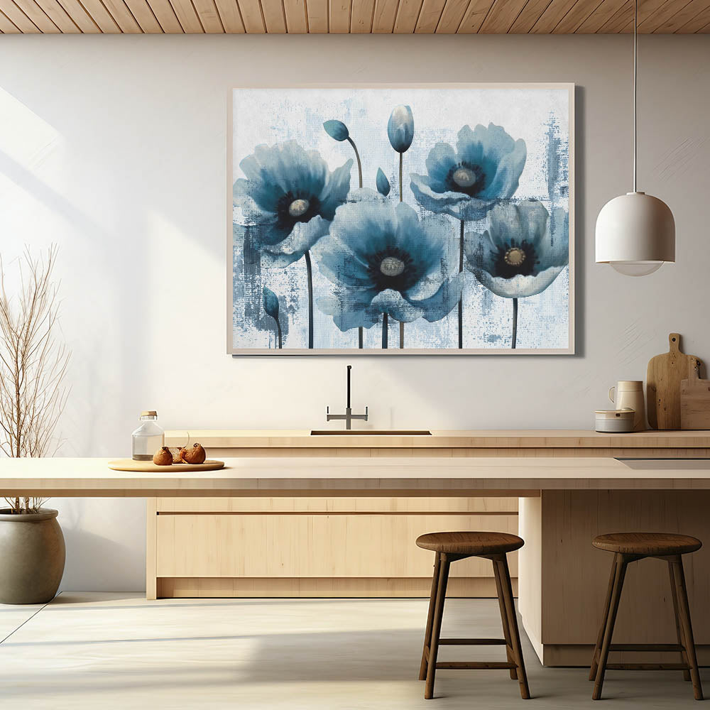 Infuse your space with the calming elegance of this blue floral abstract art. Featuring a stunning arrangement of poppy flowers in rich shades of blue, this artwork captures the delicate beauty of nature with a contemporary twist. The textured background adds depth and contrast, making the vibrant blue flowers stand out, creating a serene yet striking focal point for any room.