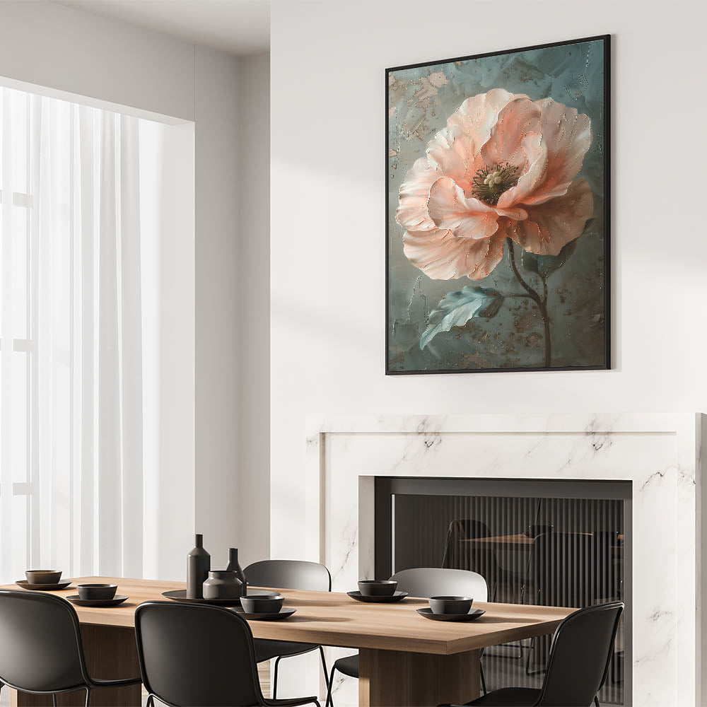 This Colorful Abstract Florals piece brings the beauty of a single peach-colored flower to life with intricate textures and subtle shading. The Elegant Peach Flower Canvas Art uses delicate brushstrokes to highlight the soft petals against a muted green background, creating a calming and sophisticated visual effect. Ideal for adding warmth and elegance to any room, this artwork embodies the gentle charm of nature.