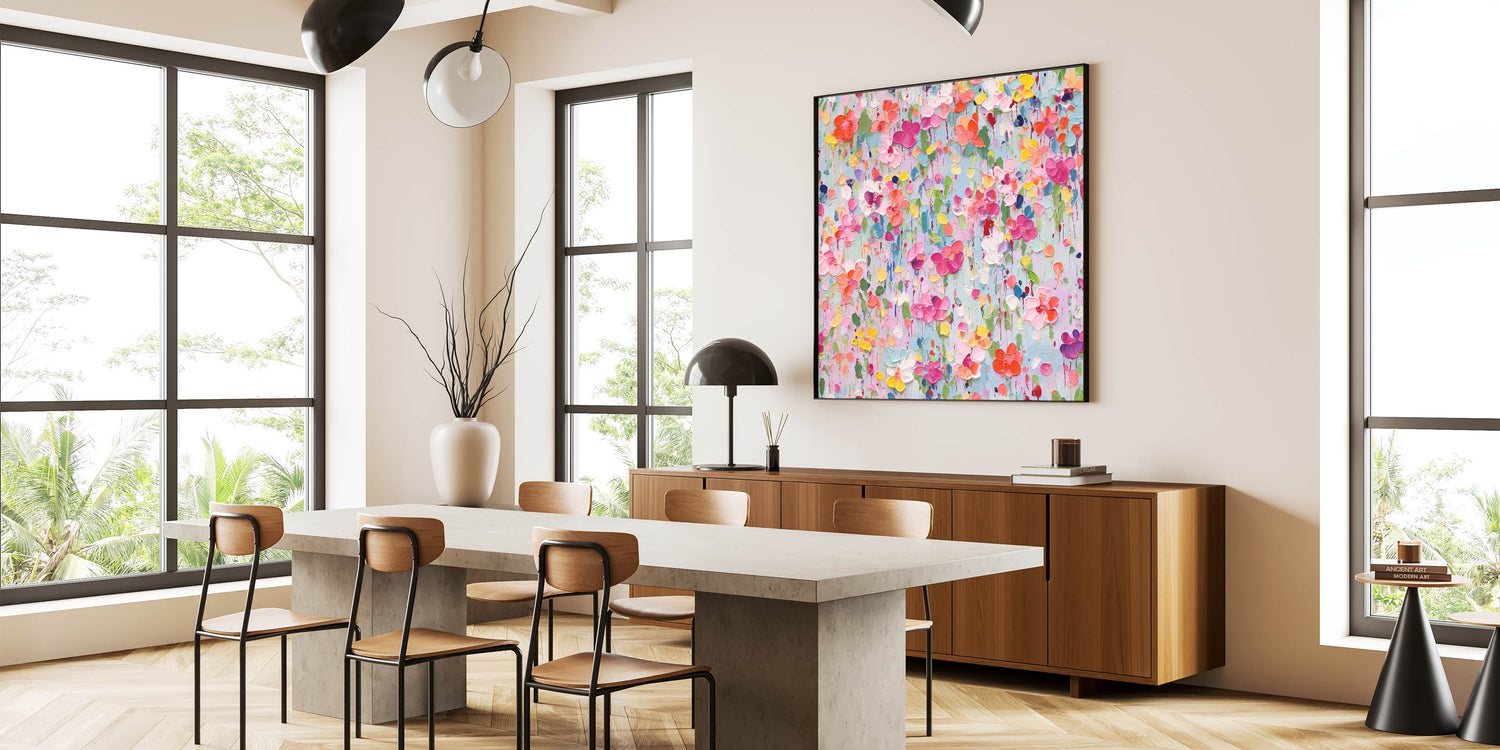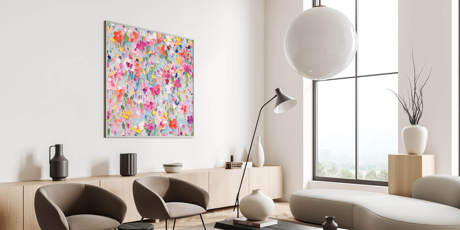 This vibrant floral abstract art is ideal for living rooms, bedrooms, or any area that needs a pop of color. Let this artwork bring the beauty of a blooming garden into your home and transform your decor.