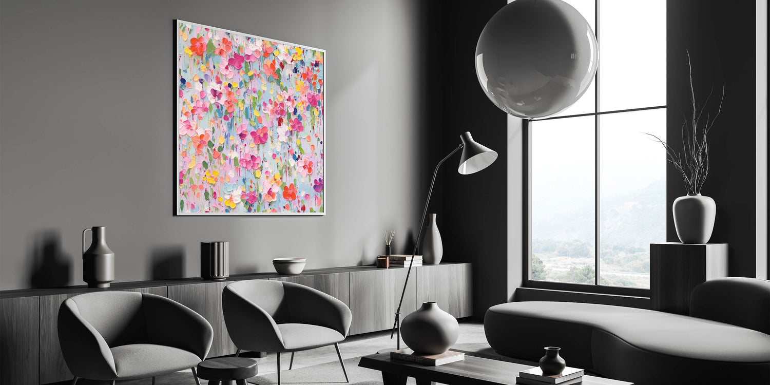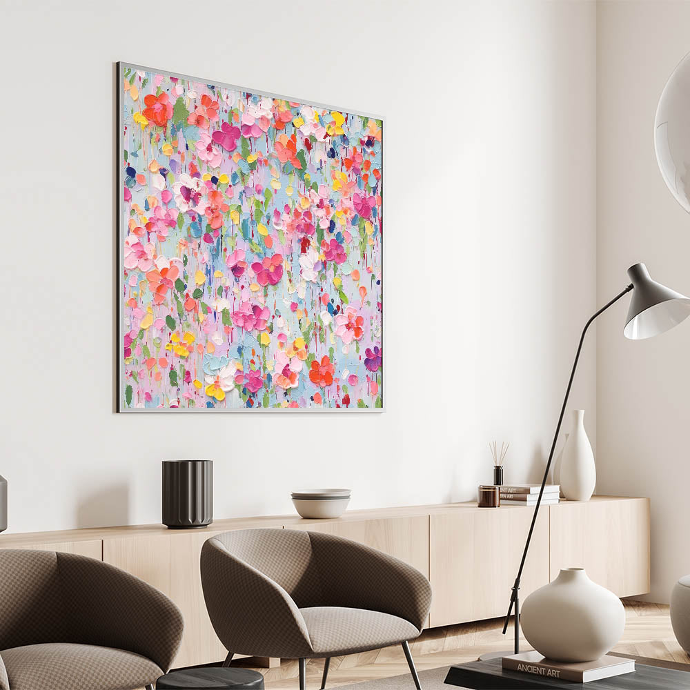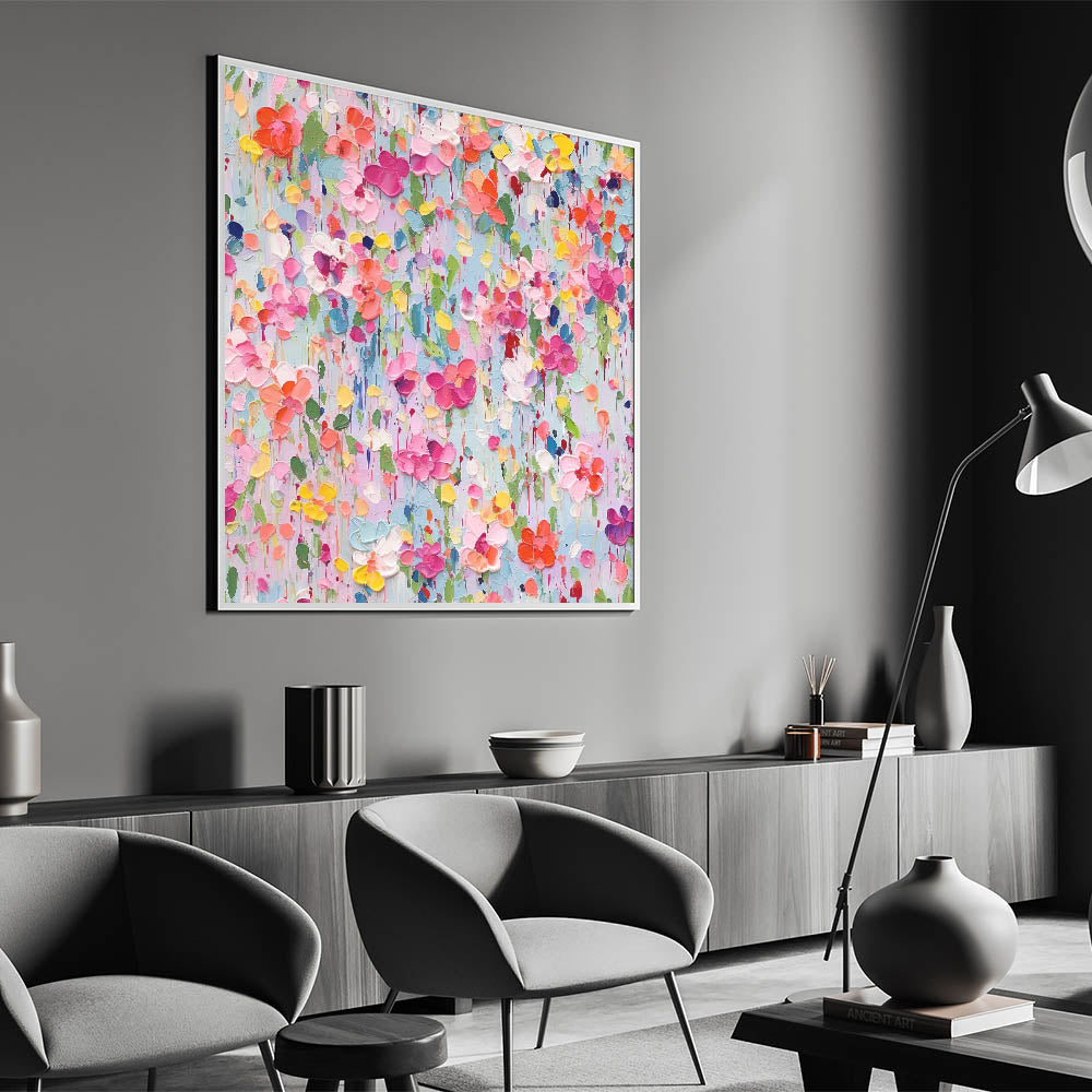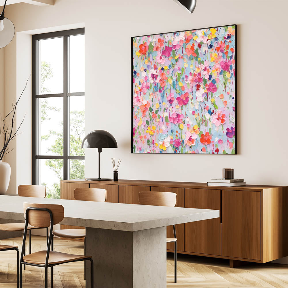 Brighten your space with this lively and colorful piece from our Abstract Florals Collection. This artwork features a vibrant array of abstract blossoms in shades of pink, orange, yellow, and green, creating a stunning floral tapestry that brings joy and energy to any room. Perfect for those who love bold, colorful decor, this piece is a celebration of nature in abstract form.
