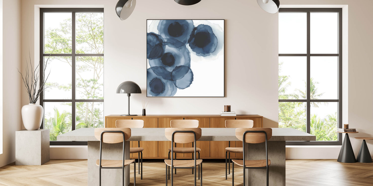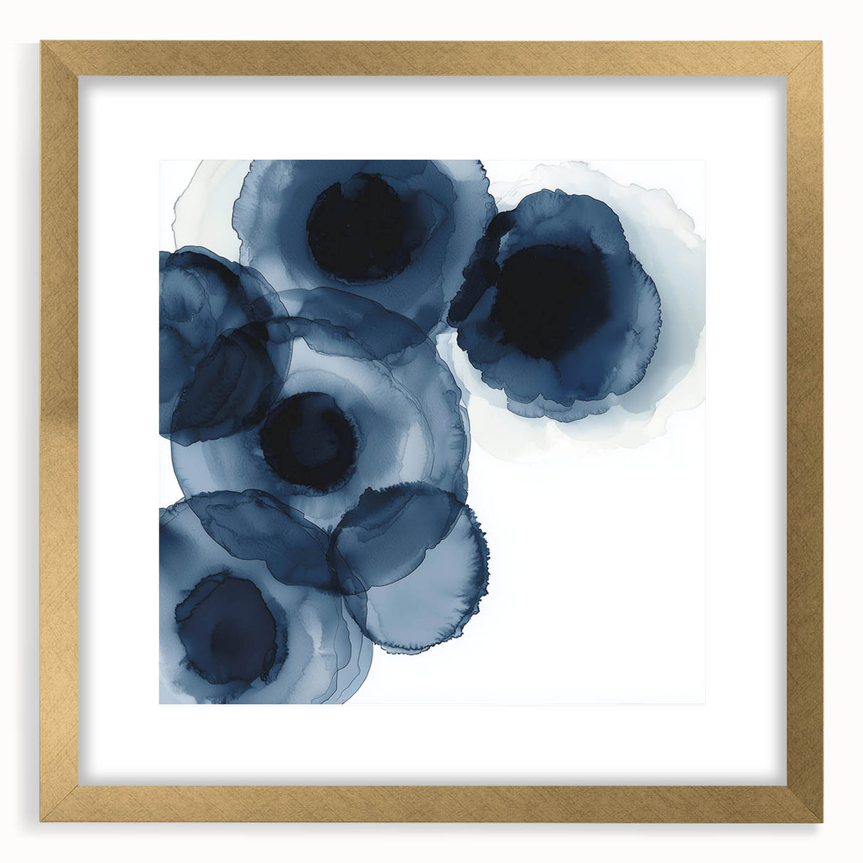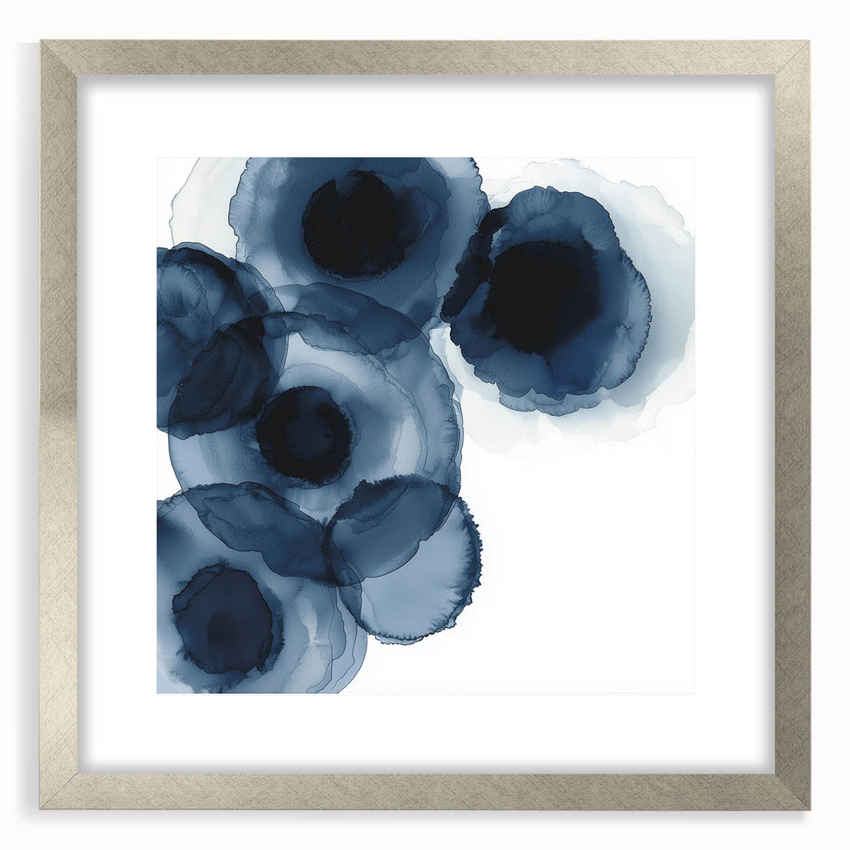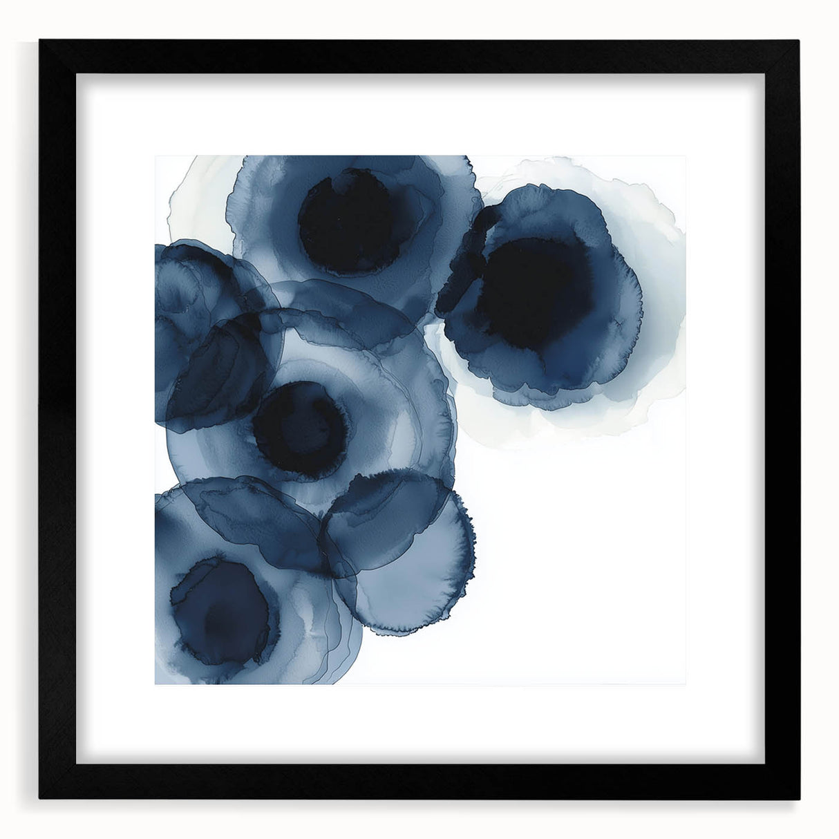 Transform your space with this contemporary abstract canvas showcasing deep navy and layered ink-style shapes. The translucent, circular forms float across a clean white background, offering a sense of calm movement and modern sophistication. A perfect fit for lovers of modern design and serene minimalist spaces.