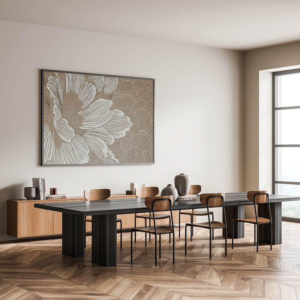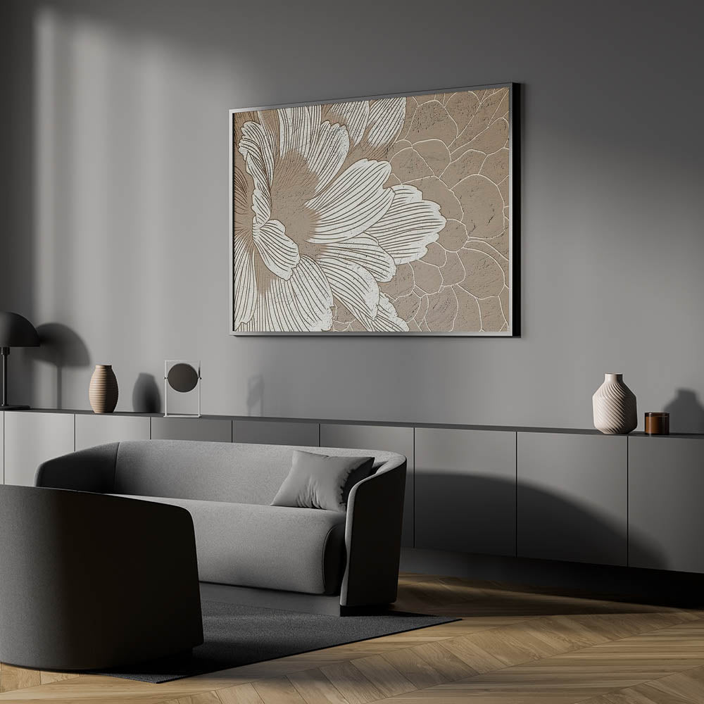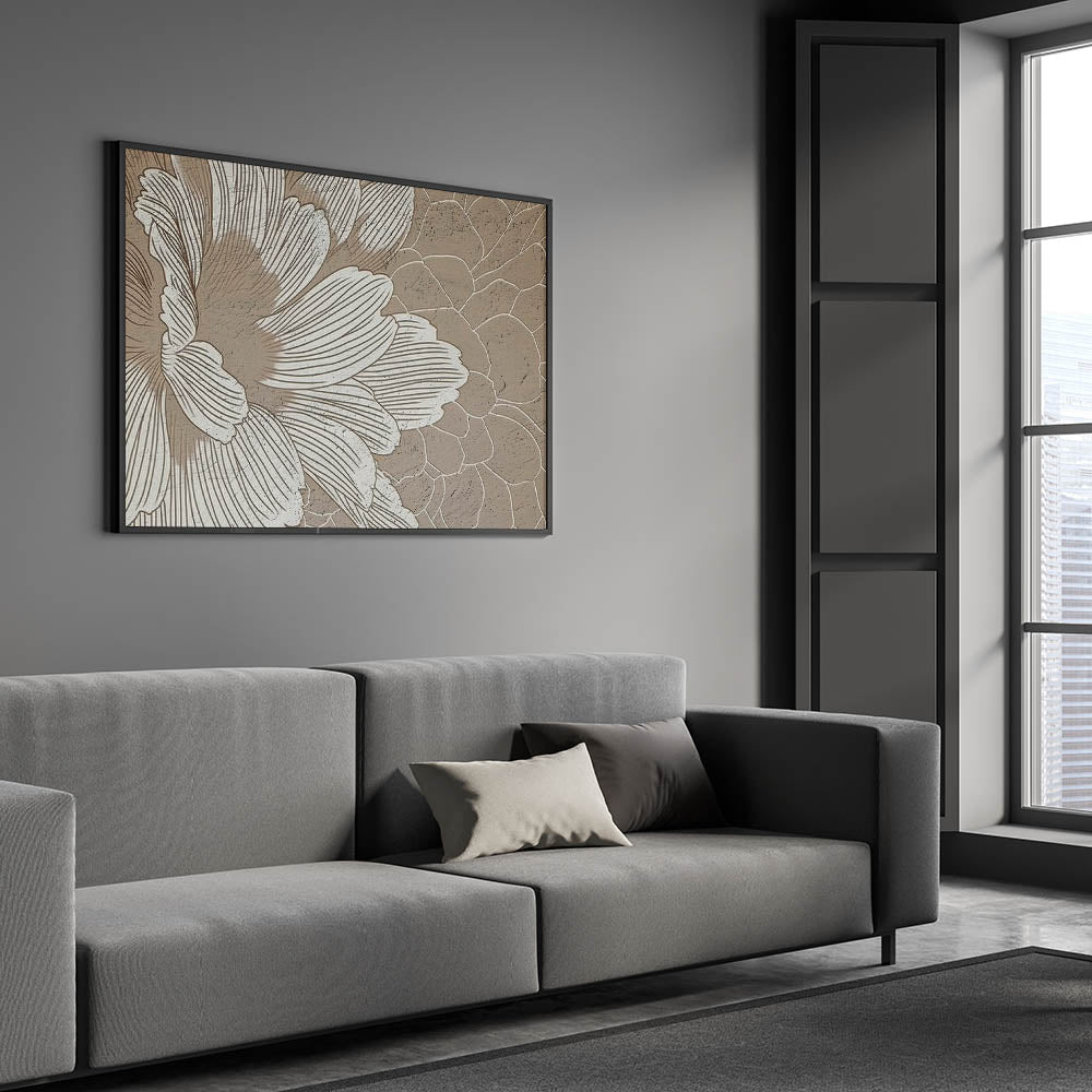 Add a touch of modern elegance to your home with this contemporary floral abstract art. This piece features beautifully drawn lines and strokes that form an intricate floral pattern, creating a harmonious blend of nature and modern design. The soft, neutral tones of beige and brown offer a calming effect, making it a perfect addition to living spaces, bedrooms, or offices that need a subtle yet impactful statement piece.