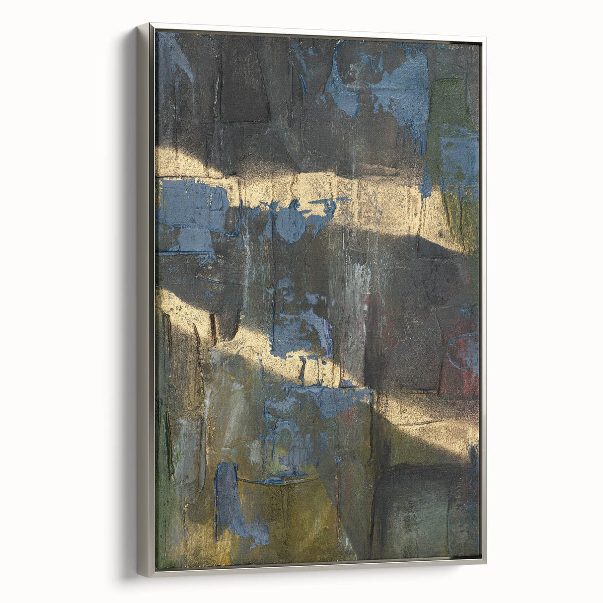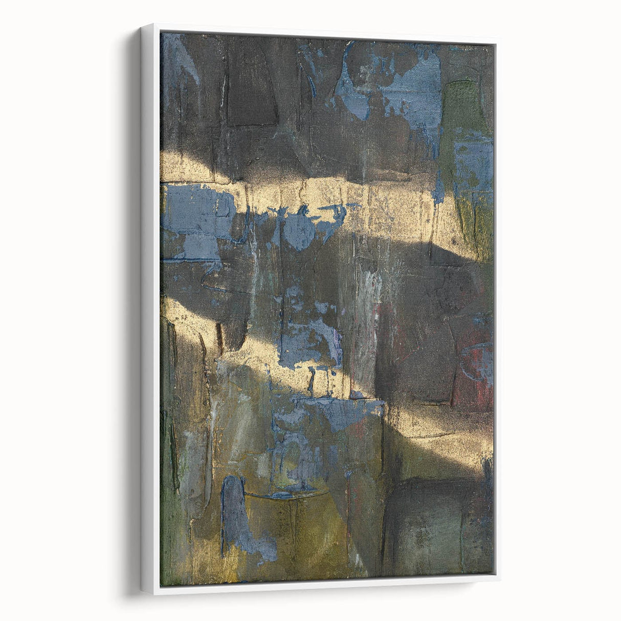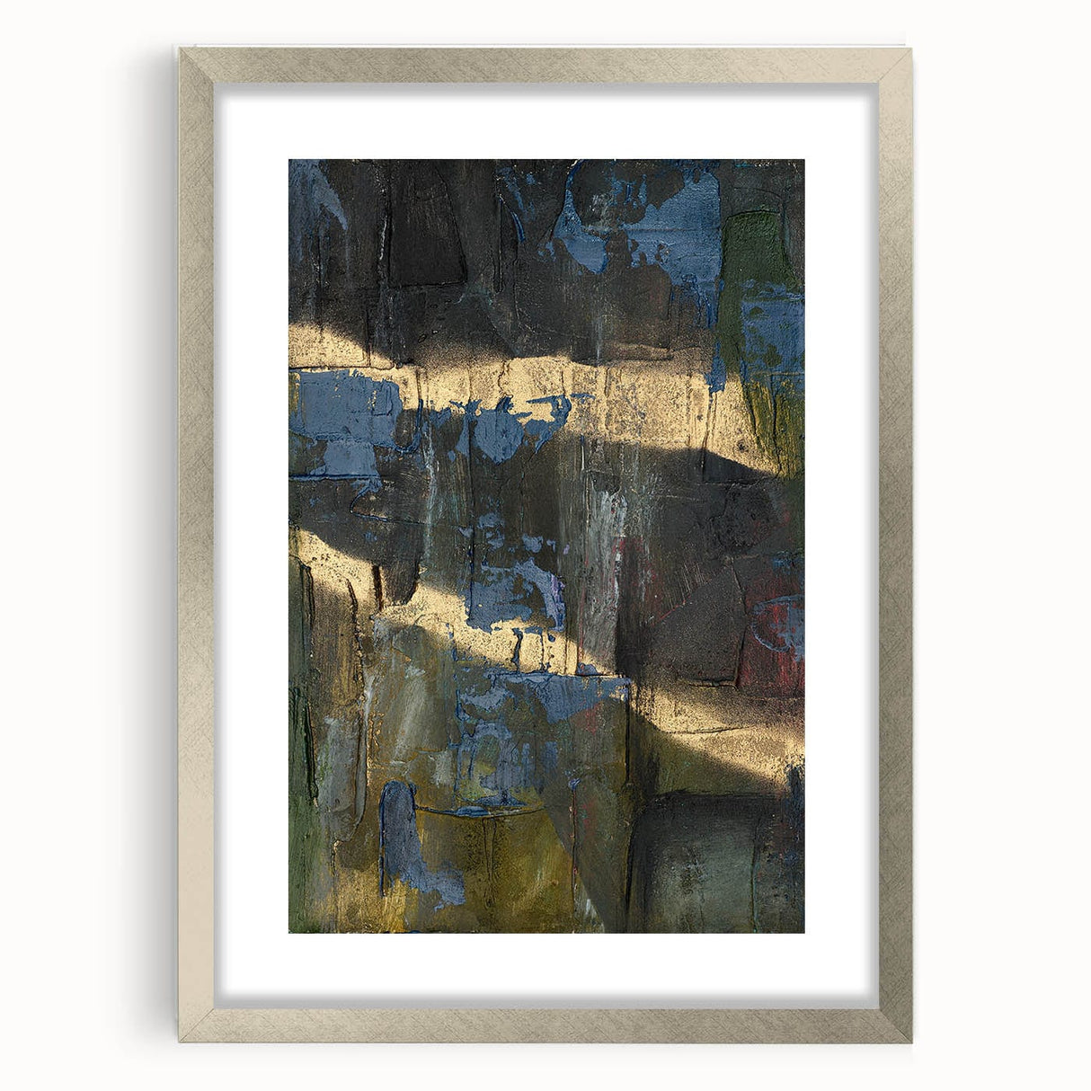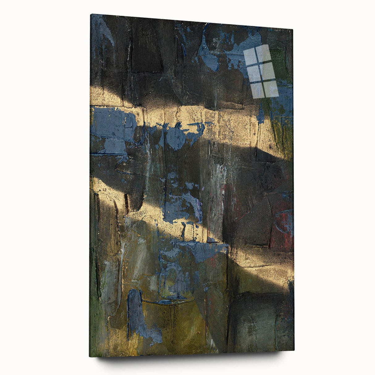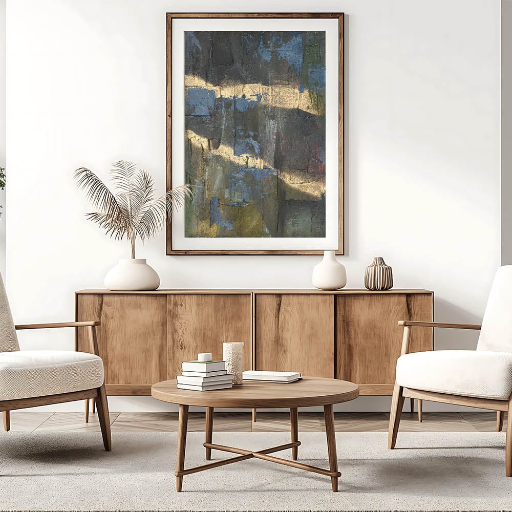 Add depth and drama to your space with this moody modern wall art, a striking fusion of black, deep blue, and gold textures. This abstract wall art features a raw and expressive composition, with layered textures and metallic highlights that create a sense of movement and mystery. The bold contrast between dark hues and shimmering gold makes this piece an ideal statement for contemporary and modern interiors.