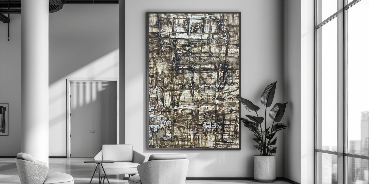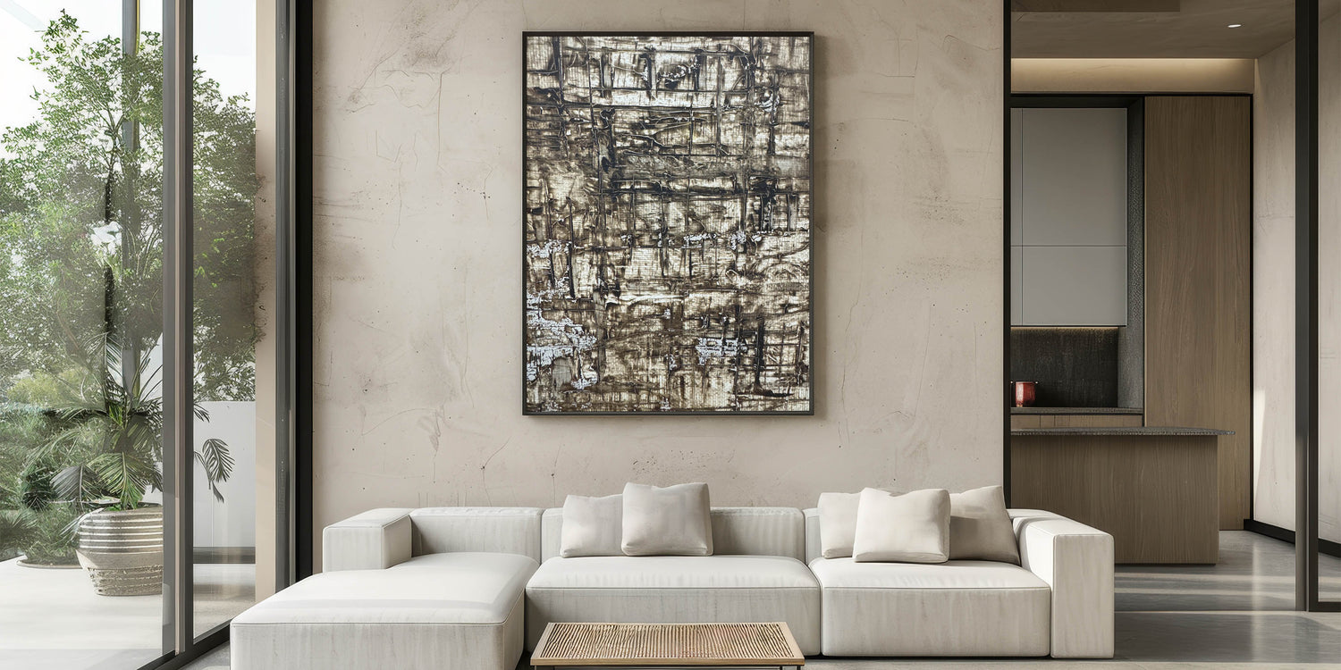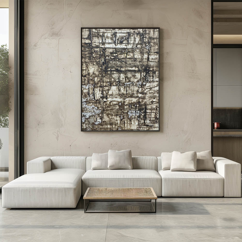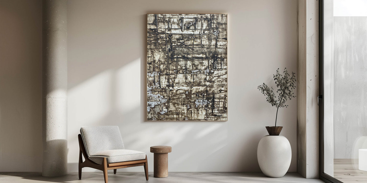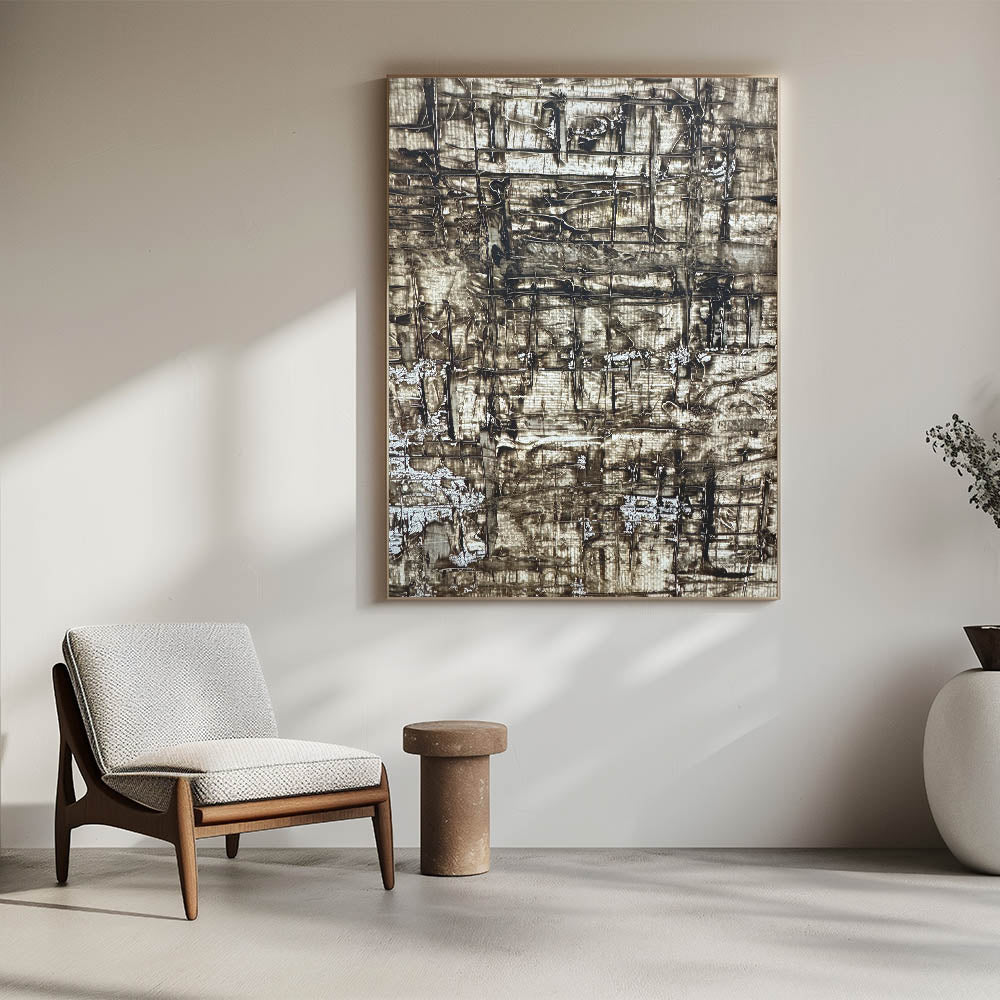 Channel warmth and depth into your space with this richly textured piece from our Earthen Harmony Abstracts collection. Crafted with layers of earthy brown, beige, and deep gray, this abstract wall art captures the natural beauty of rugged surfaces and organic formations. Its unique grid-like pattern adds architectural interest while maintaining a soothing, grounded presence.
