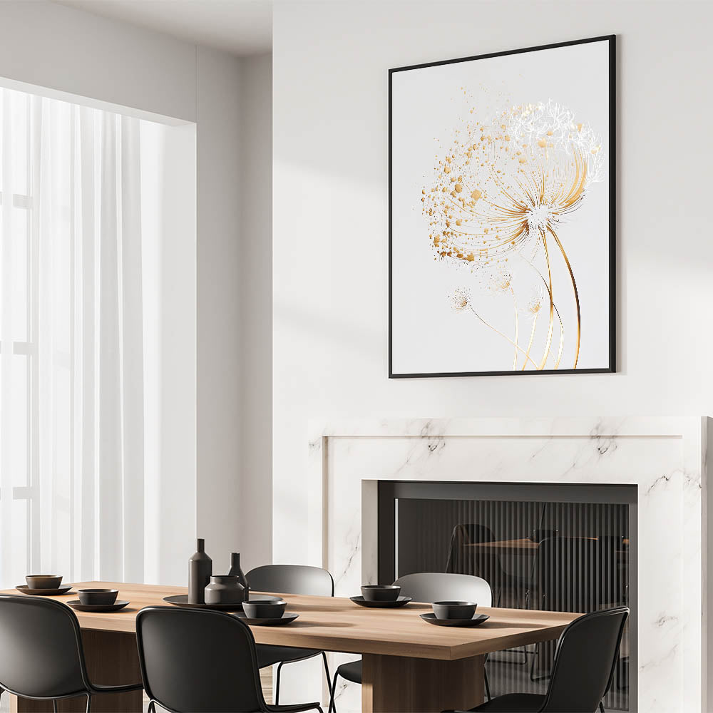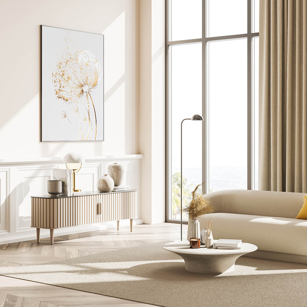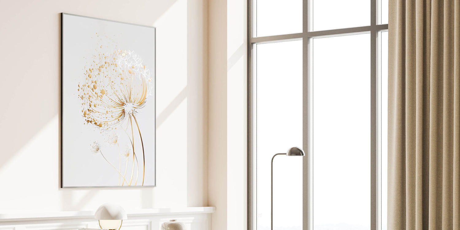 Introduce a touch of elegance to your space with this stunning abstract floral art piece. Designed to captivate with its intricate details and metallic gold accents, this artwork seamlessly blends modern aesthetics with nature-inspired beauty. The delicate botanical patterns are set against a soft, neutral background, making it the perfect choice for contemporary interiors.