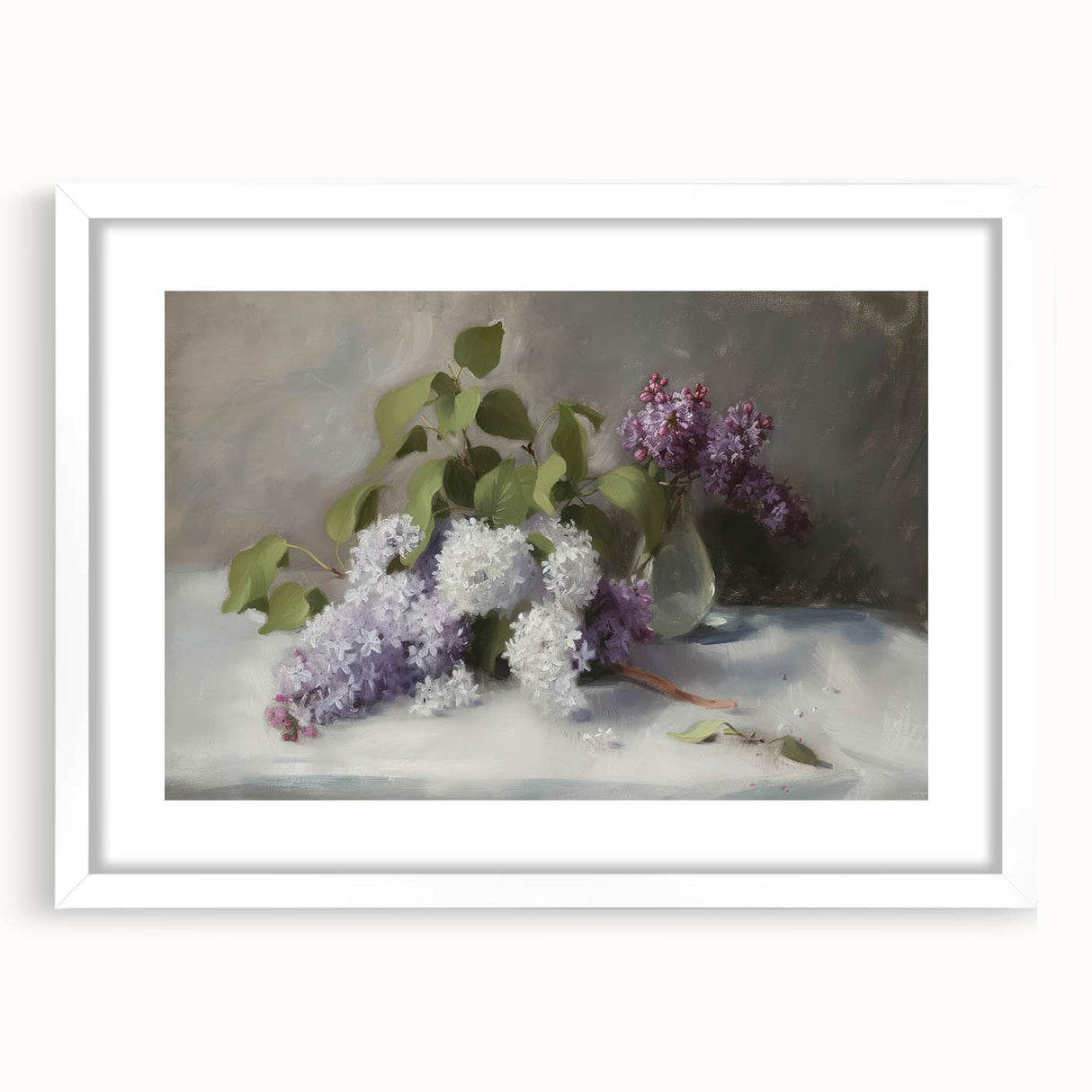 Bring timeless elegance to your décor with this exquisite floral still-life artwork. Featuring delicate lilac and white blossoms arranged with fresh green foliage, this piece evokes the serene beauty of nature. The soft brushstrokes and muted background create a harmonious balance, making it an ideal choice for classic, rustic, or modern interiors. Perfect for brightening any living space, bedroom, or office with its natural charm.