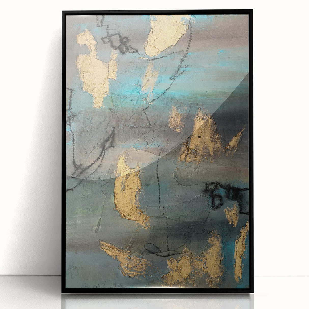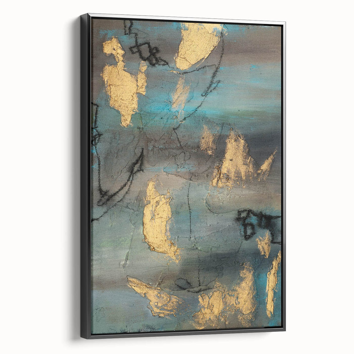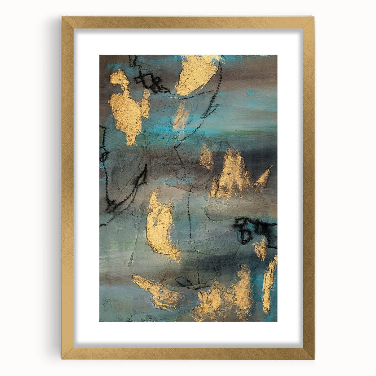 Elegant Moody Modern Wall Art - Abstract Teal, Gold & Gray Print