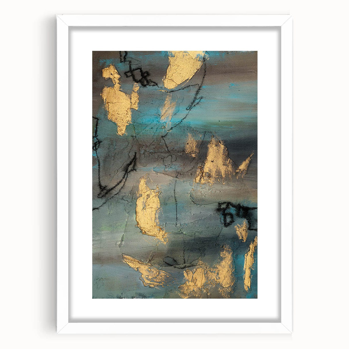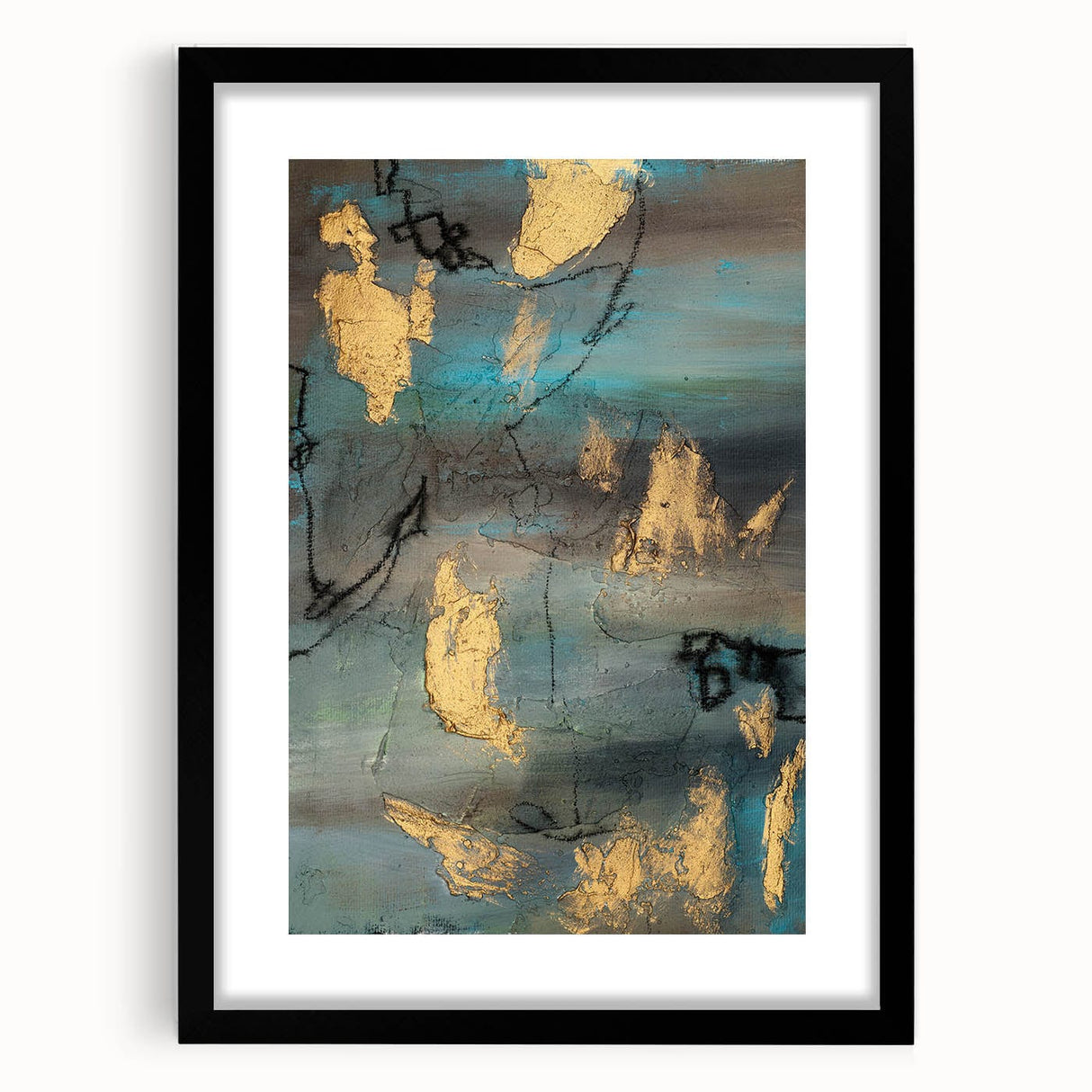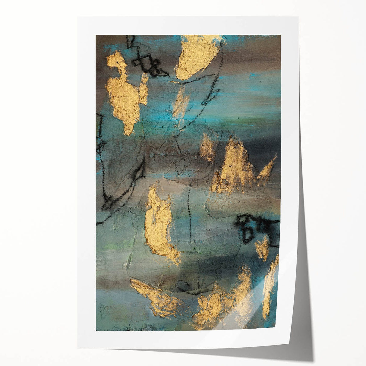 Elegant Moody Modern Wall Art - Abstract Teal, Gold & Gray Print