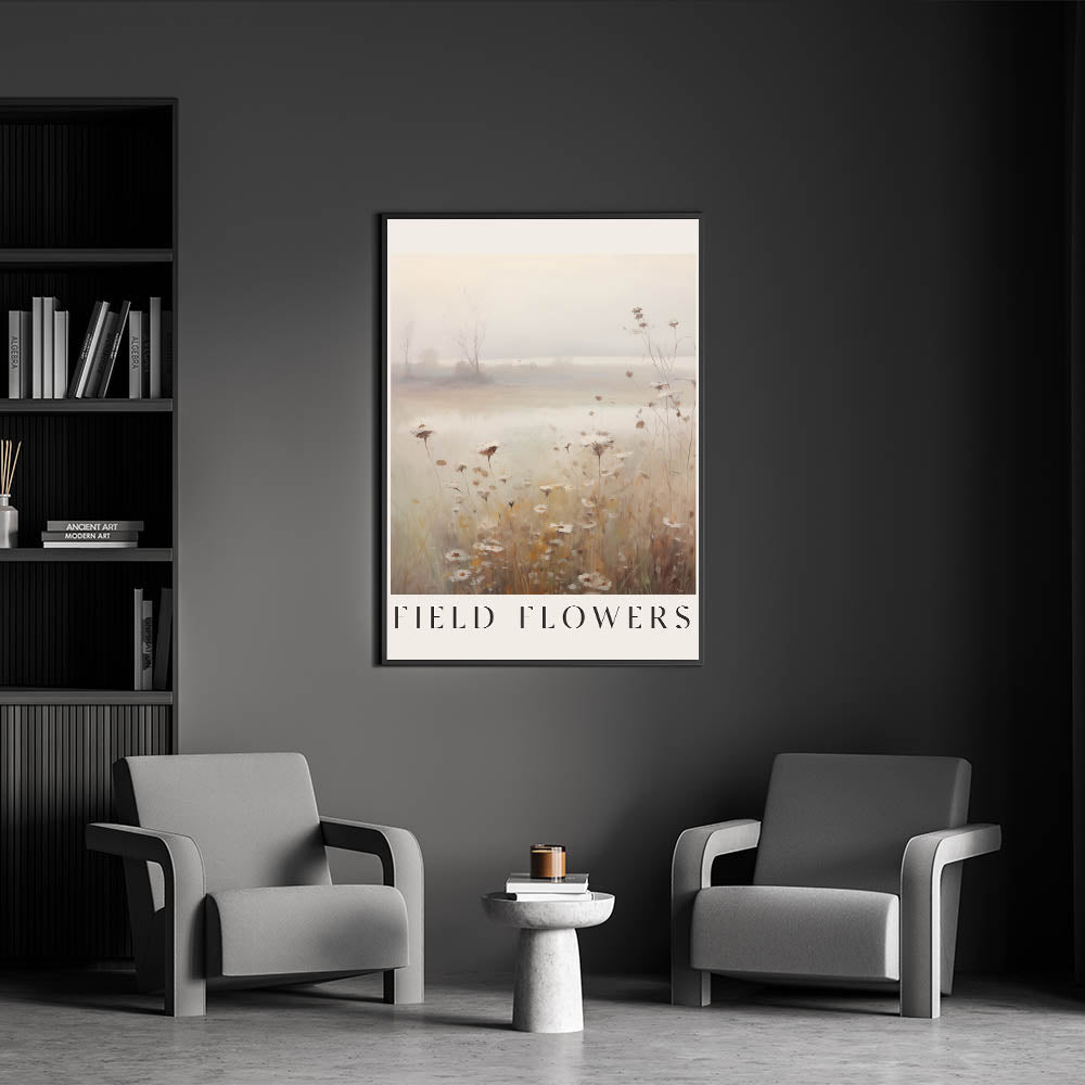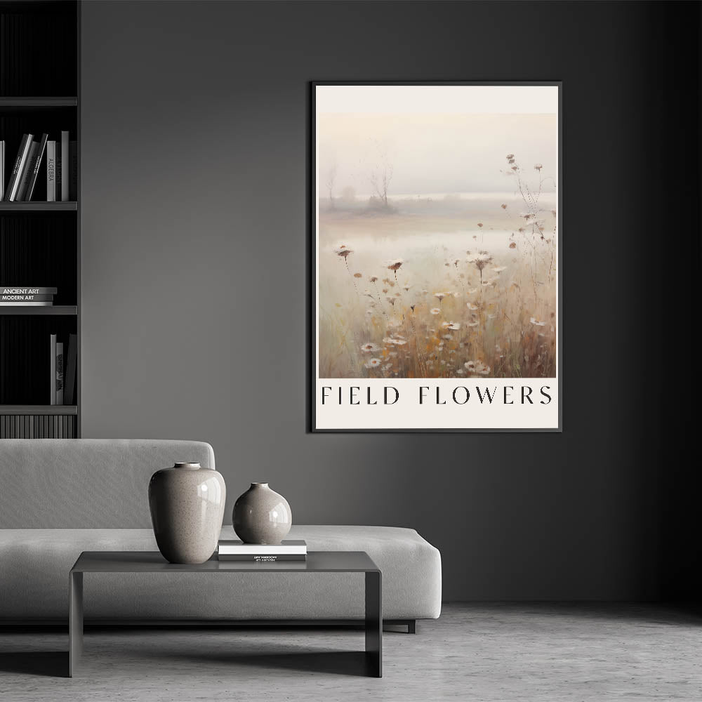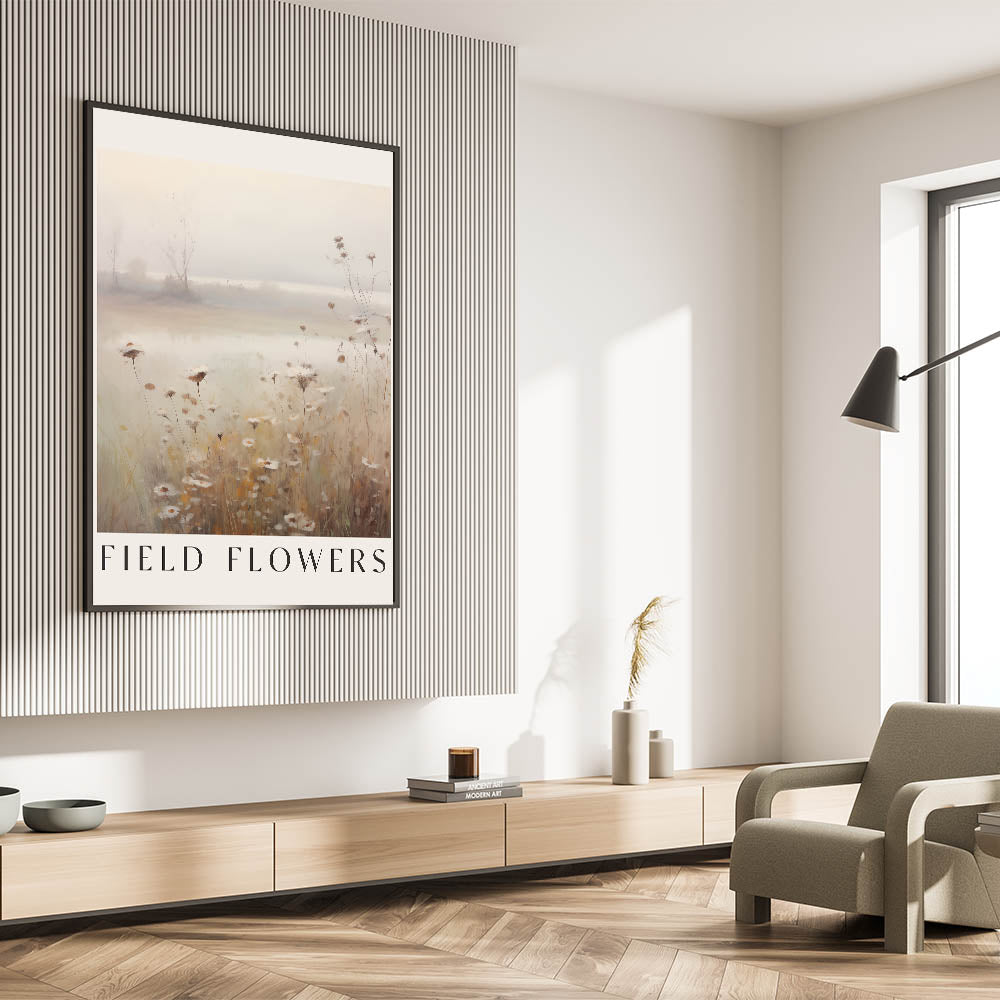 Bring the beauty of nature into your home with this serene minimalist artwork titled "Field Flowers." Featuring a delicate depiction of a wildflower meadow bathed in soft, natural light, this piece captures the peaceful essence of a tranquil landscape. The muted tones and gentle brushstrokes create a calming visual experience, perfect for enhancing modern and contemporary interiors.