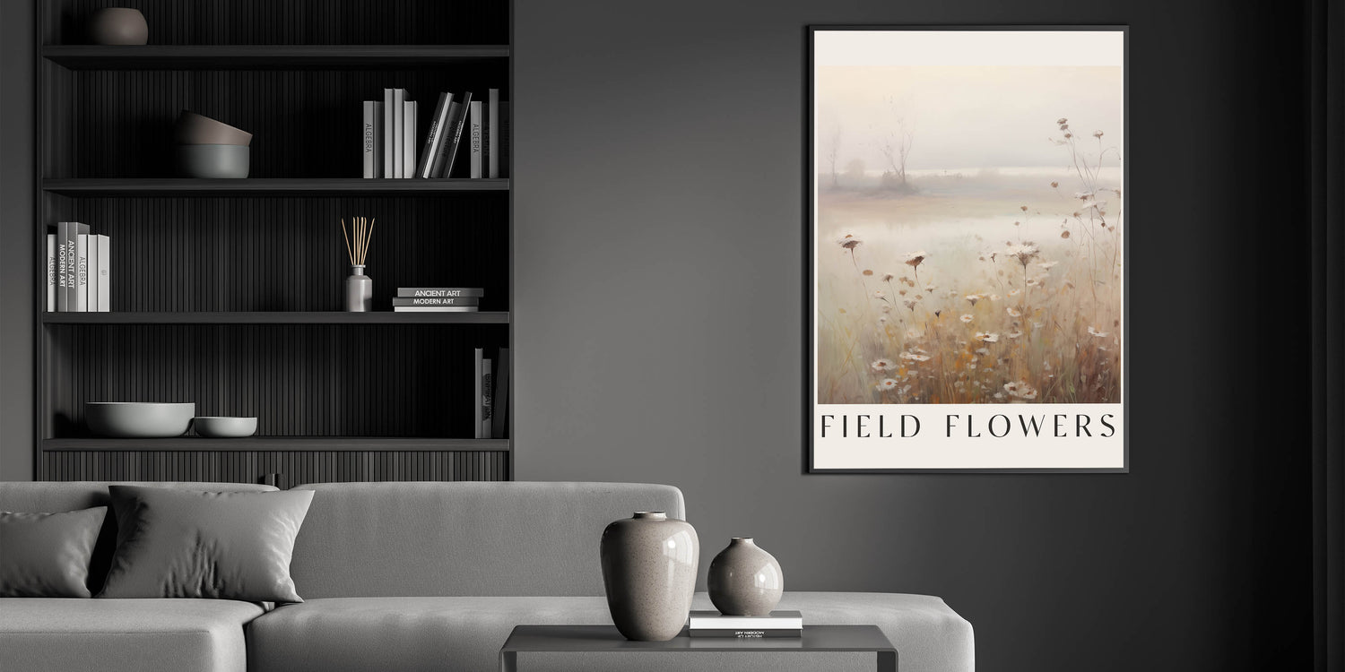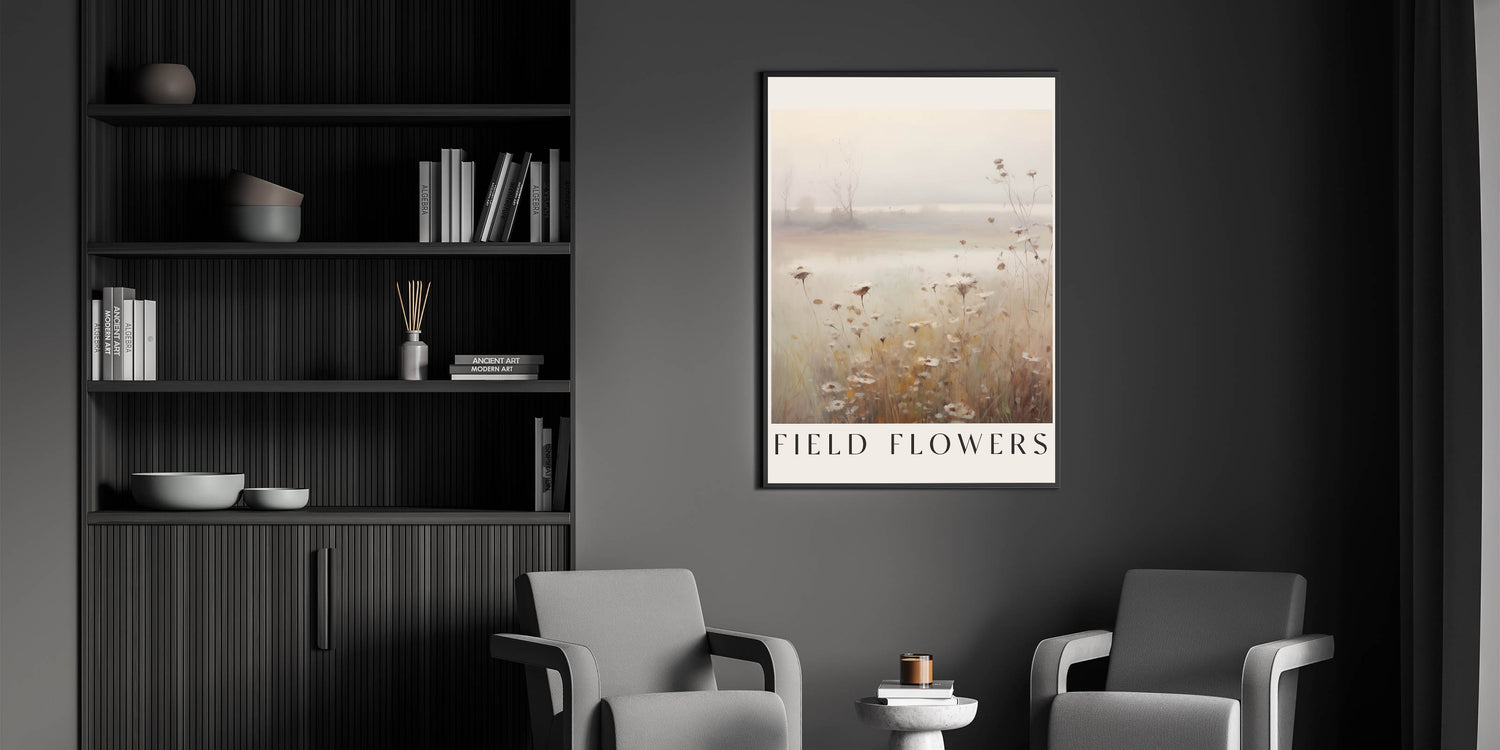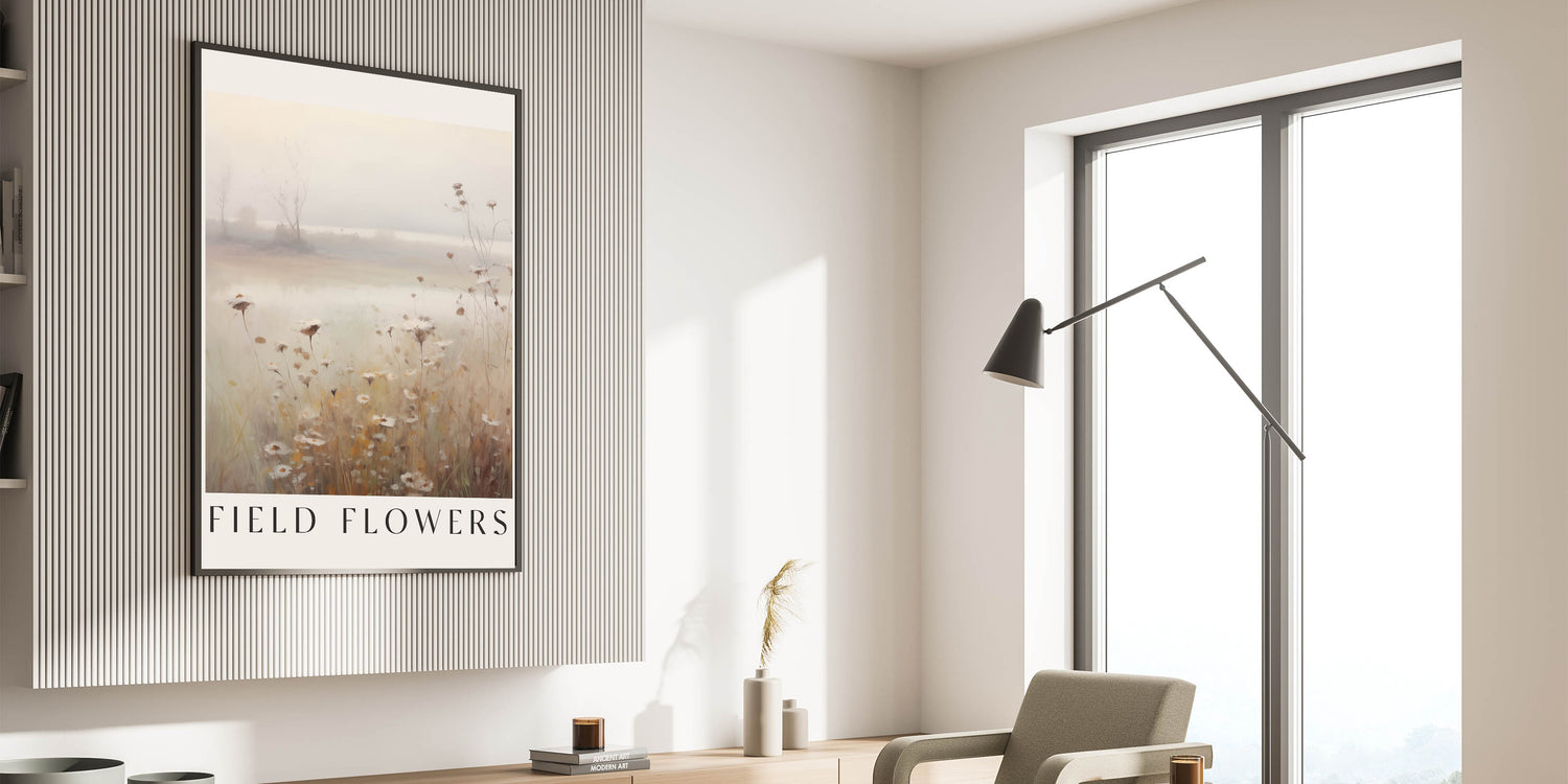 Bring the beauty of nature into your home with this serene minimalist artwork titled "Field Flowers." Featuring a delicate depiction of a wildflower meadow bathed in soft, natural light, this piece captures the peaceful essence of a tranquil landscape. The muted tones and gentle brushstrokes create a calming visual experience, perfect for enhancing modern and contemporary interiors.