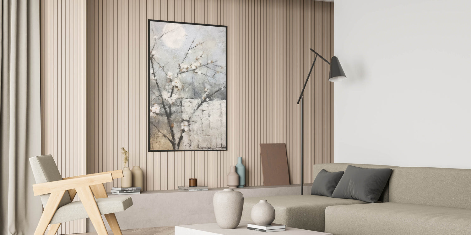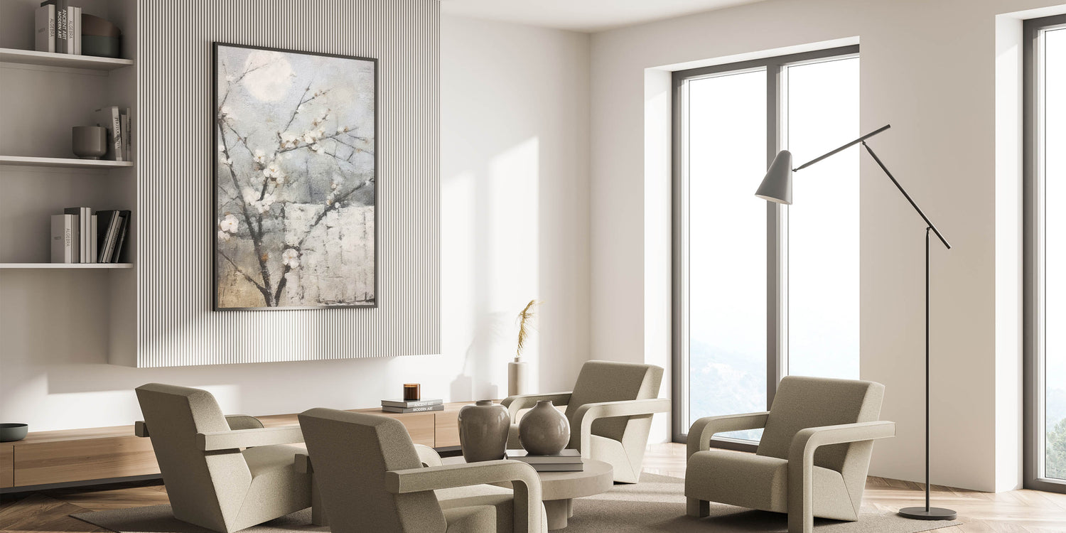 - Artwork Style: Minimalist floral abstract with a gentle, textured palette