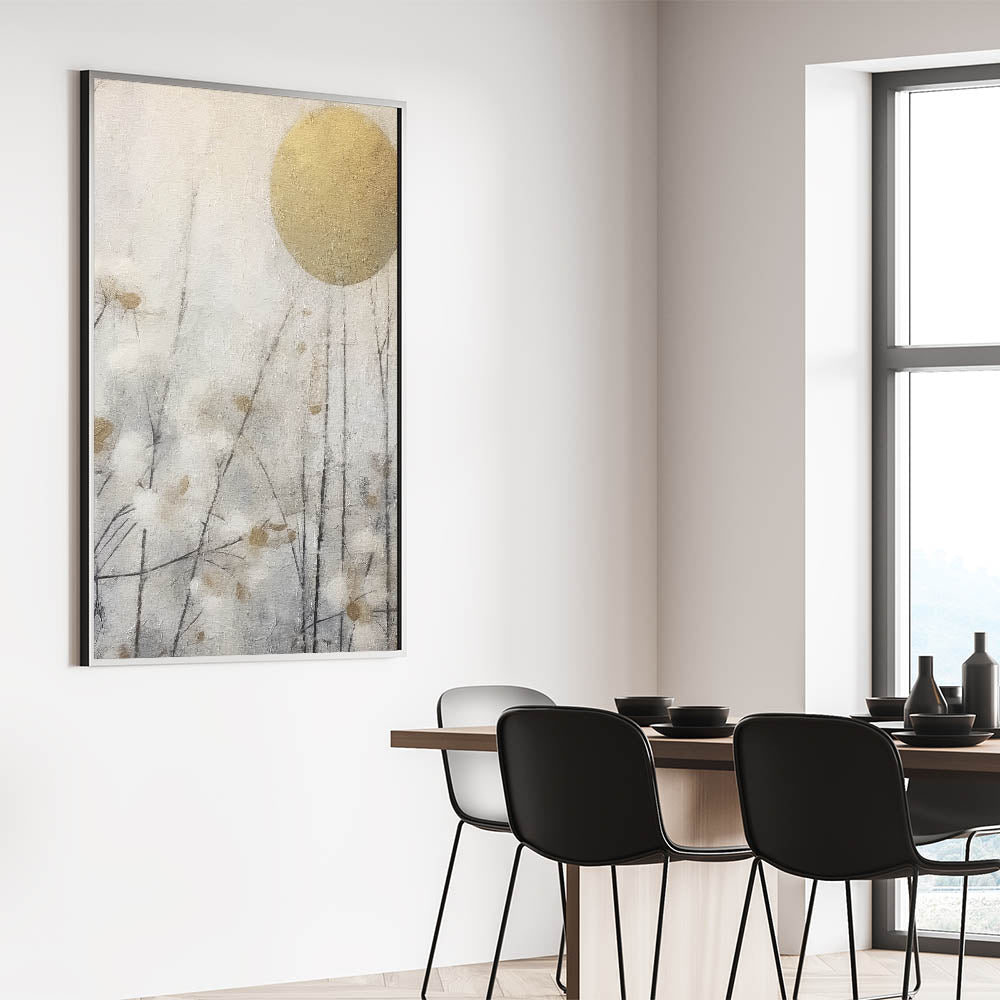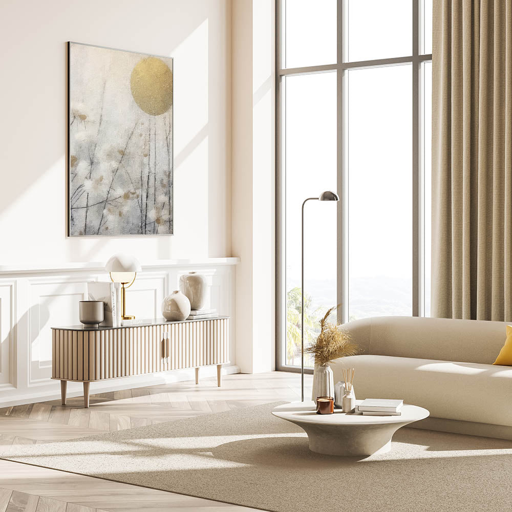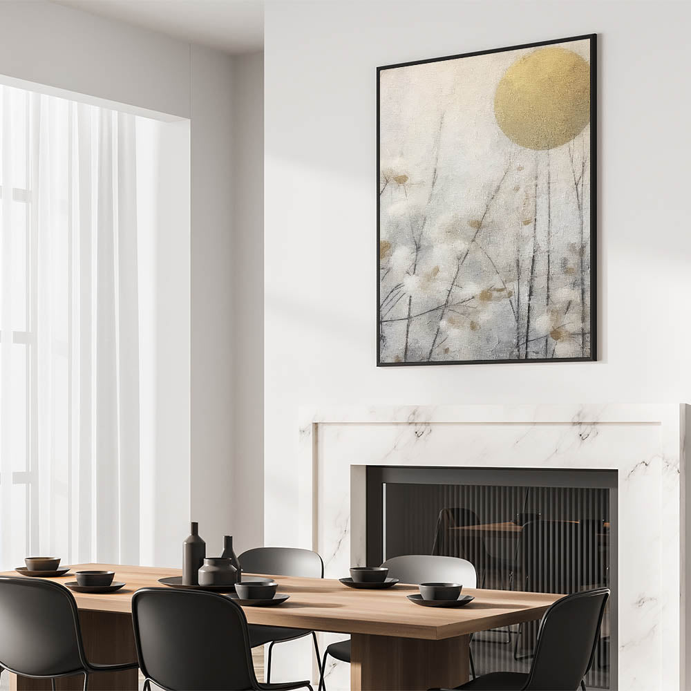 Add a touch of serenity to your home with this beautiful floral abstract canvas art. This piece is designed with soft, neutral tones and warm gold accents, creating a peaceful and elegant atmosphere. Its minimalist botanical patterns and textured finish make it a perfect addition for those looking for contemporary floral wall art that enhances any room without overwhelming it.