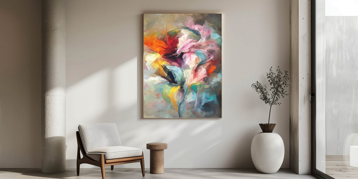 • Offered in premium material options: Stretched Canvas, Framed Canvas, Acrylic Glass, Framed Acrylic Glass, Framed Print, Rolled Canvas, and Rolled Print.