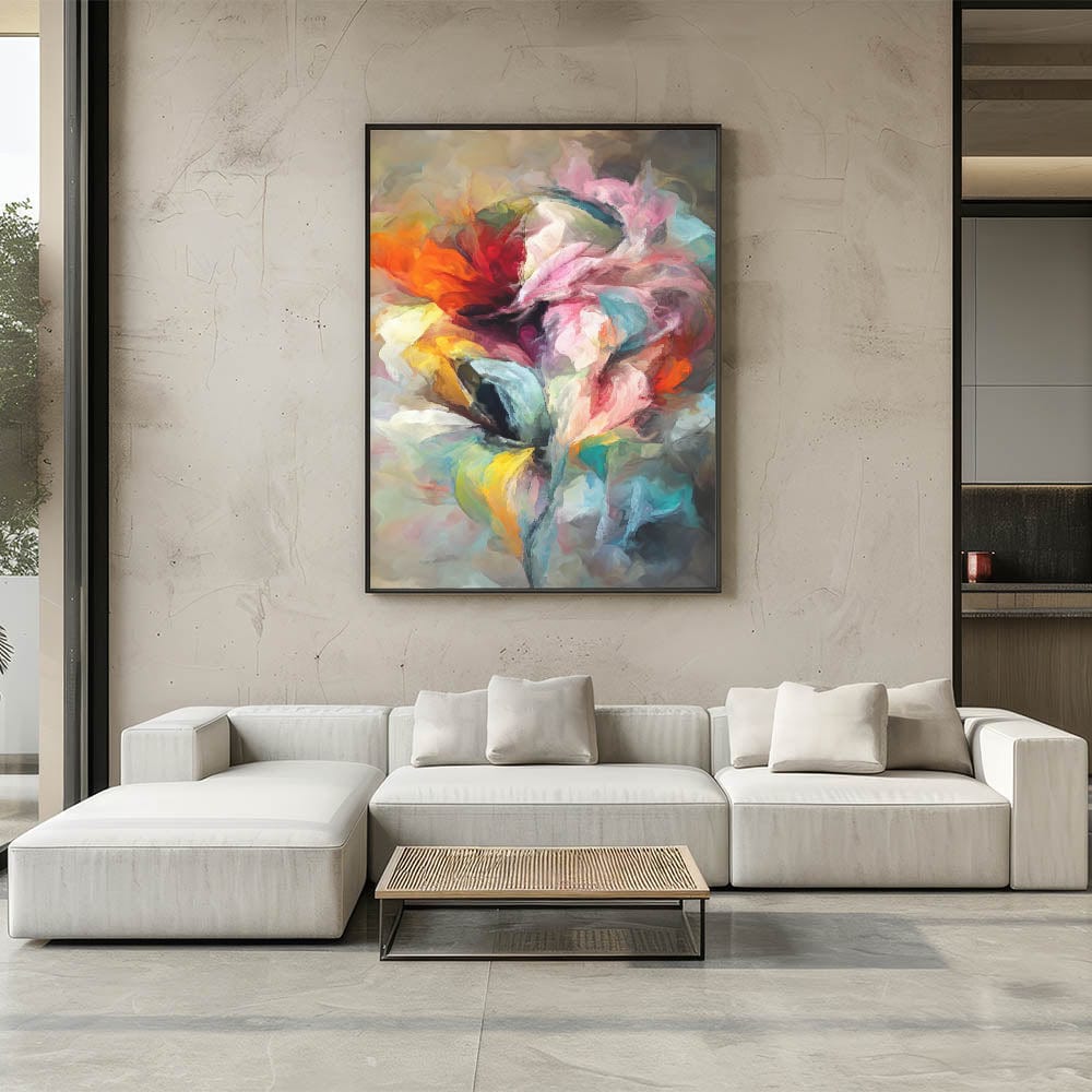 Enhance your living space with our captivating Fluid Abstract Art Collection, featuring modern fluid art prints characterized by graceful movement and vibrant hues. This abstract fluid canvas art seamlessly blends gentle pastel pinks, lively oranges, soft blues, and touches of teal, creating a mesmerizing visual harmony perfect for contemporary décor styles.