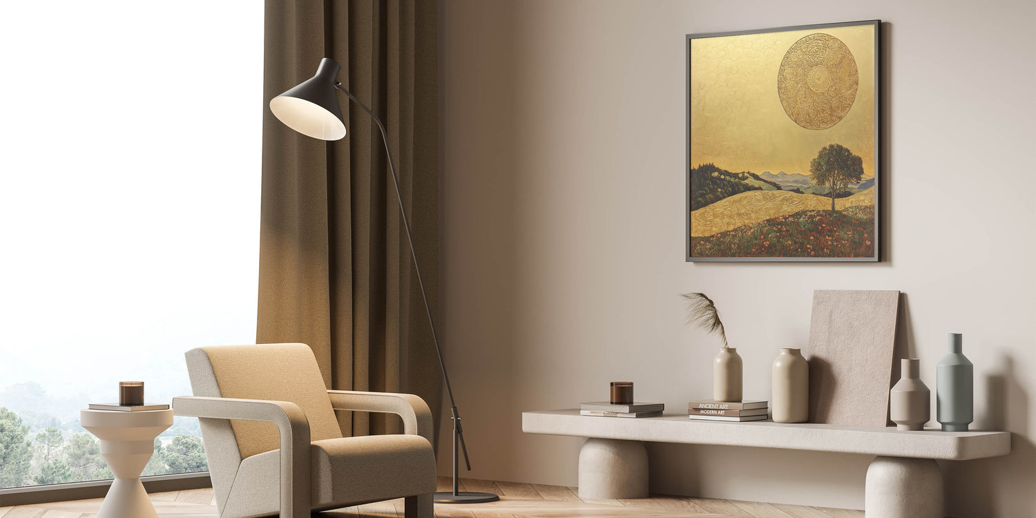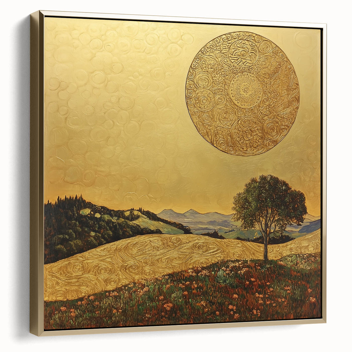 Golden Abstract Floral Wall Art – Celestial Landscape Canvas Print