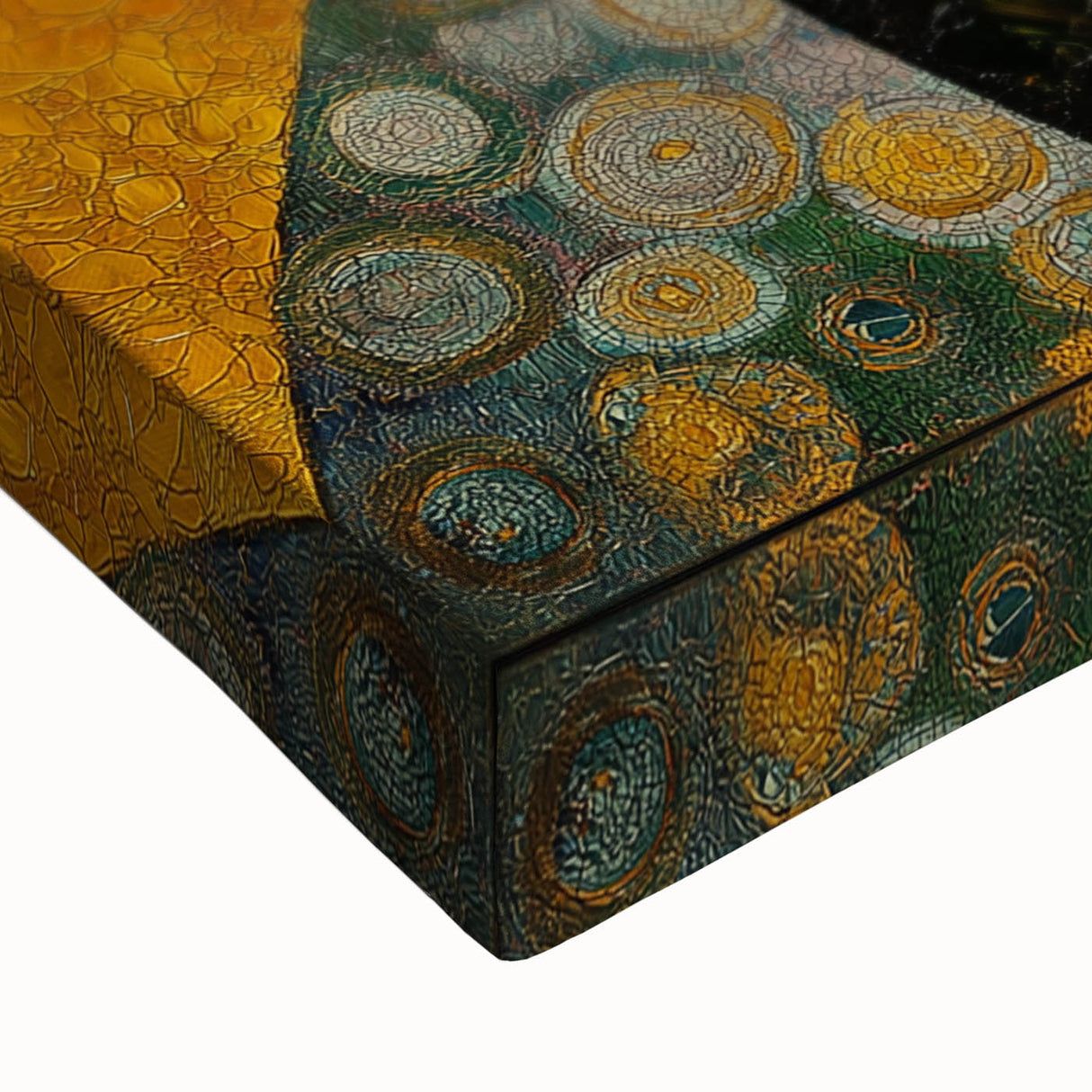 Add a bold statement to your space with this abstract floral artwork for home decor. Featuring a mesmerizing swirl of golden hues, deep greens, and black, this modern flower abstract painting brings a luxurious yet organic aesthetic to any interior. The intricate textures and circular patterns evoke a sense of movement, making this a stunning contemporary botanical canvas print for art lovers.