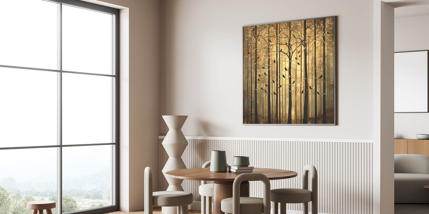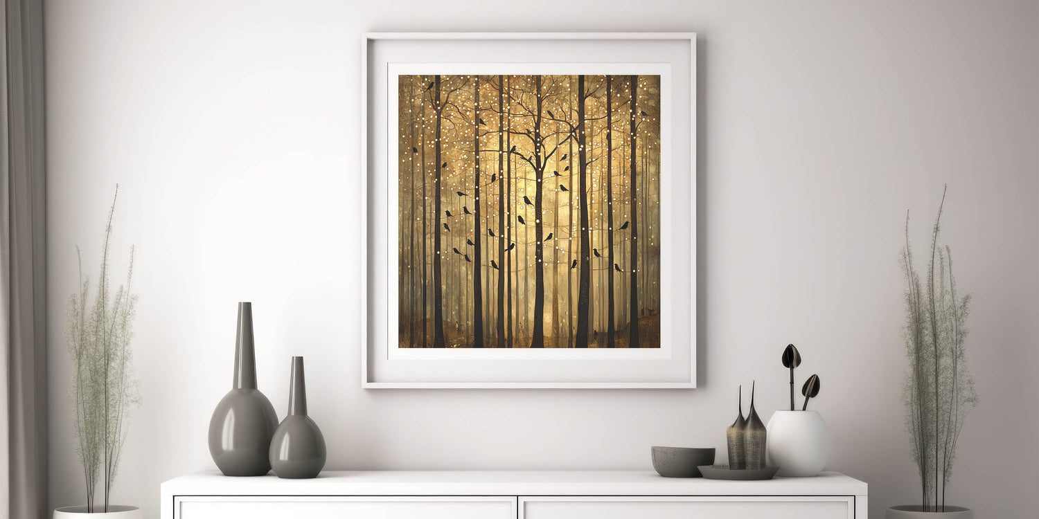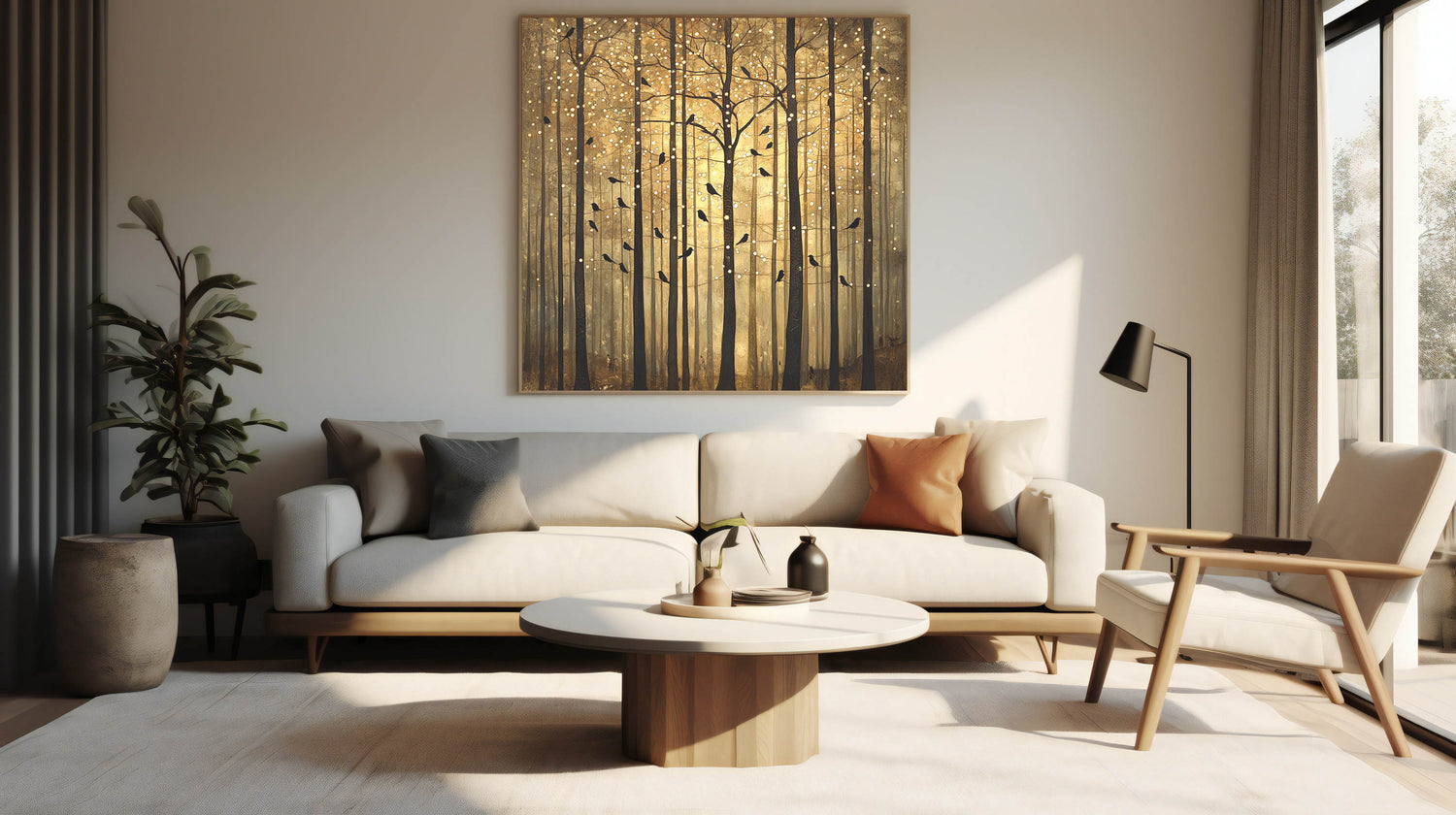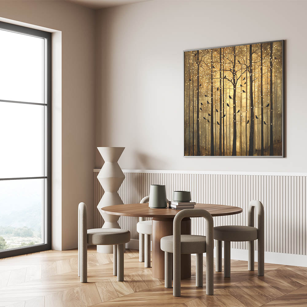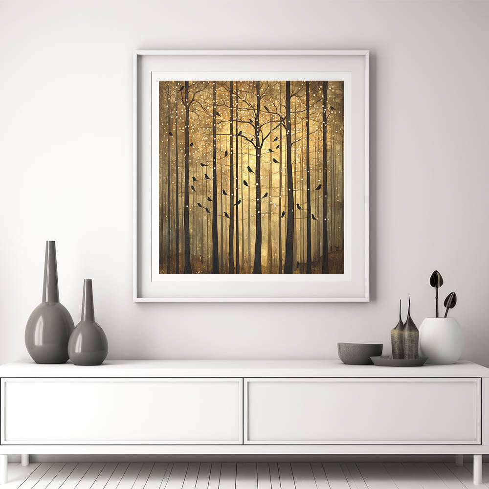 Golden Forest Abstract Wall Art – Mystical Nature Canvas Print